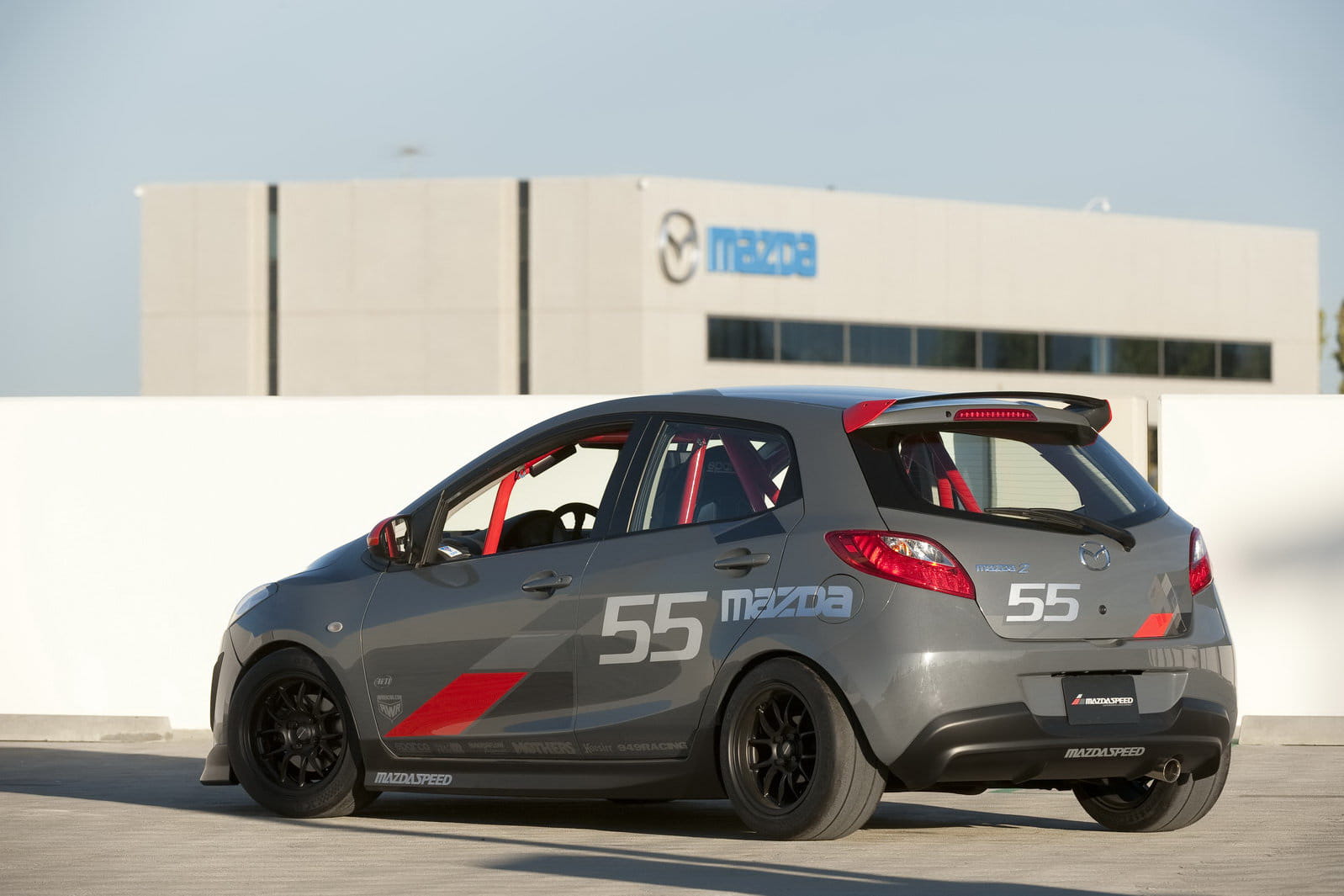 Hay también tres Mazda2 entre los que destaca el Evil Track. Llama la atención ya desde fuera por la jaula de seguridad de color rojo que protege al único ocupante posible, el conductor (se han eliminado asientos y demás elementos sobrantes). En la lista, aunque no aparezca en las fotos, también se encuentra un RX-8 con motor rotativo 20B Mazda de tres rotores preparado para competir en las series Grand-Am GT.