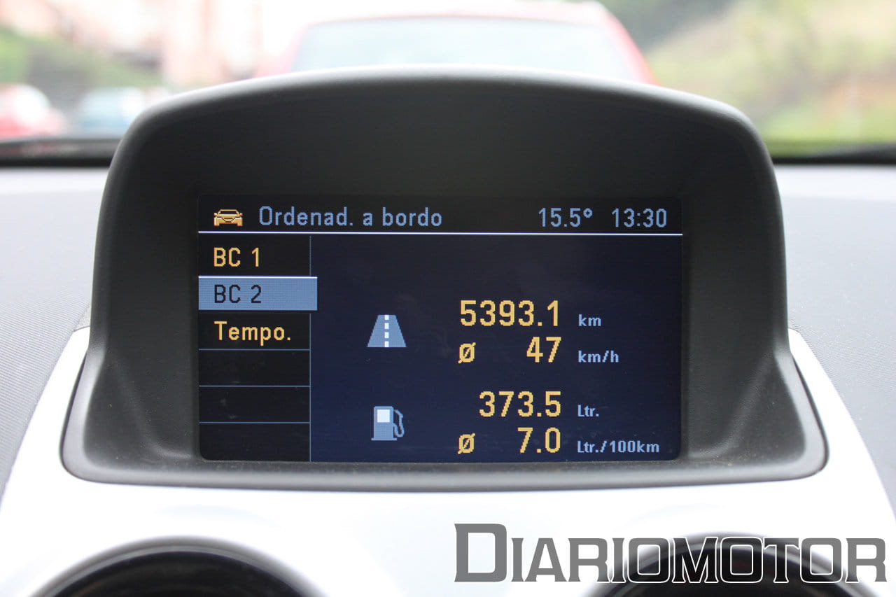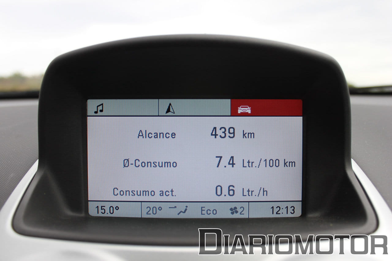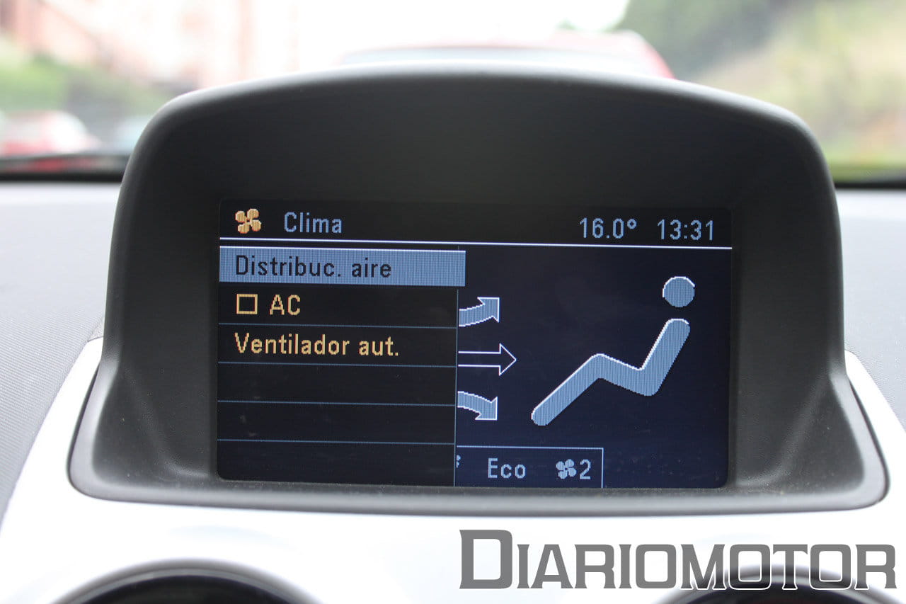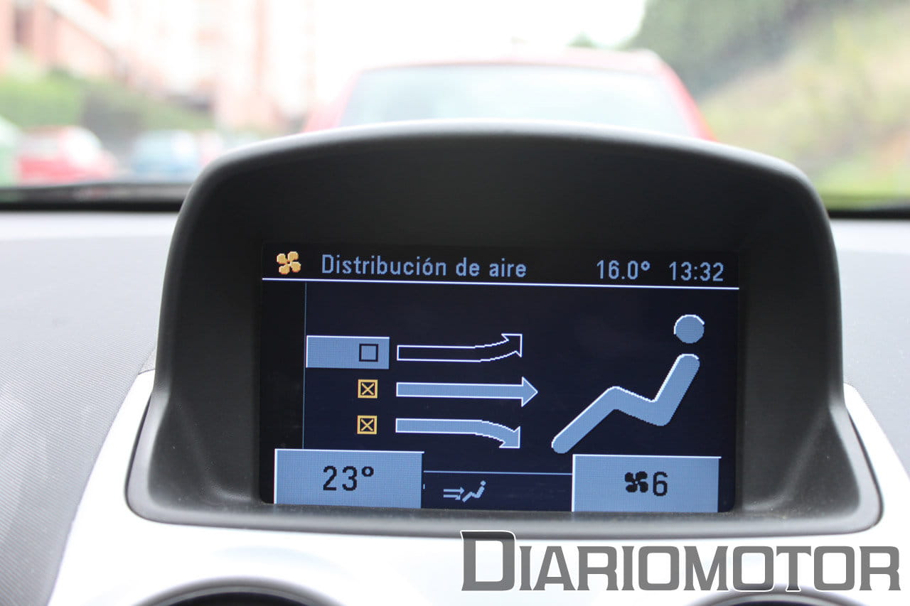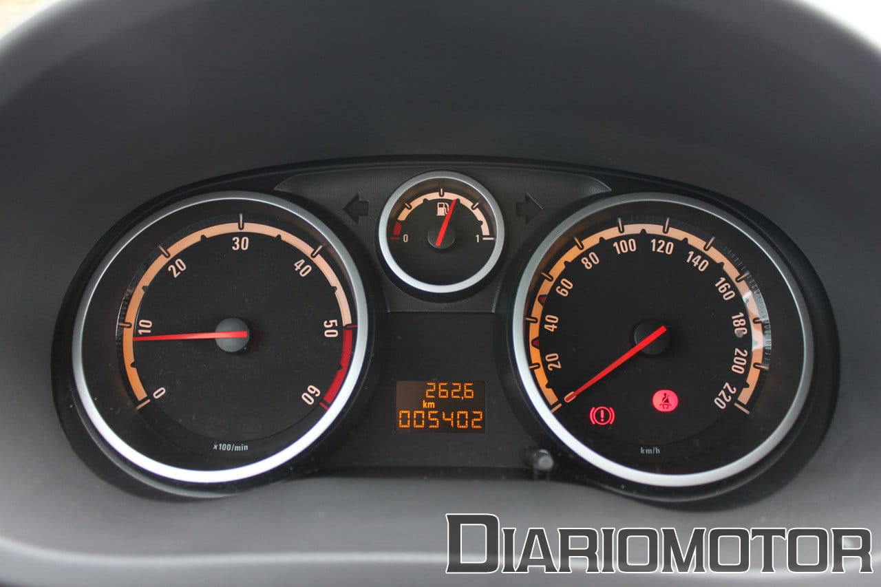 Sin embargo, el reposapies no tiene una protección de metal o plástico, y a base de ir el pie siempre sobre la moqueta, esta va a terminar previblemente desgastándose. Debido a que los pétalos del asiento sujetan bastante las piernas, vamos a conducir con ellas bastante juntas, por lo que nuestra rodilla no va a tocar en la mayor parte de los casos la consola central. Ante nosotros, tenemos la instrumentación, que no difiere con respecto a otros Corsa CDTI y no es específica de la versión GSi.