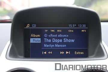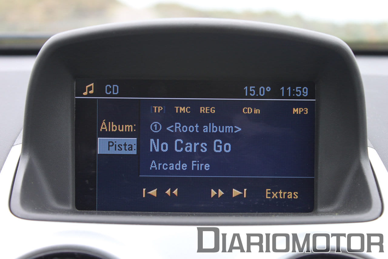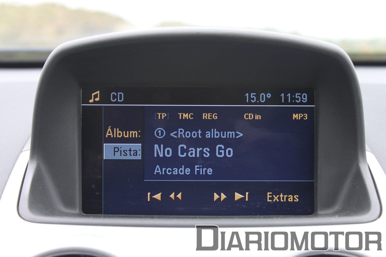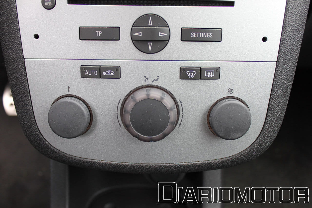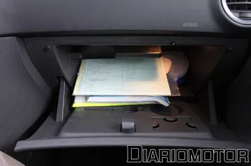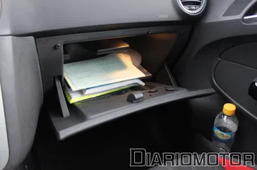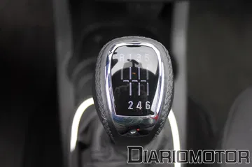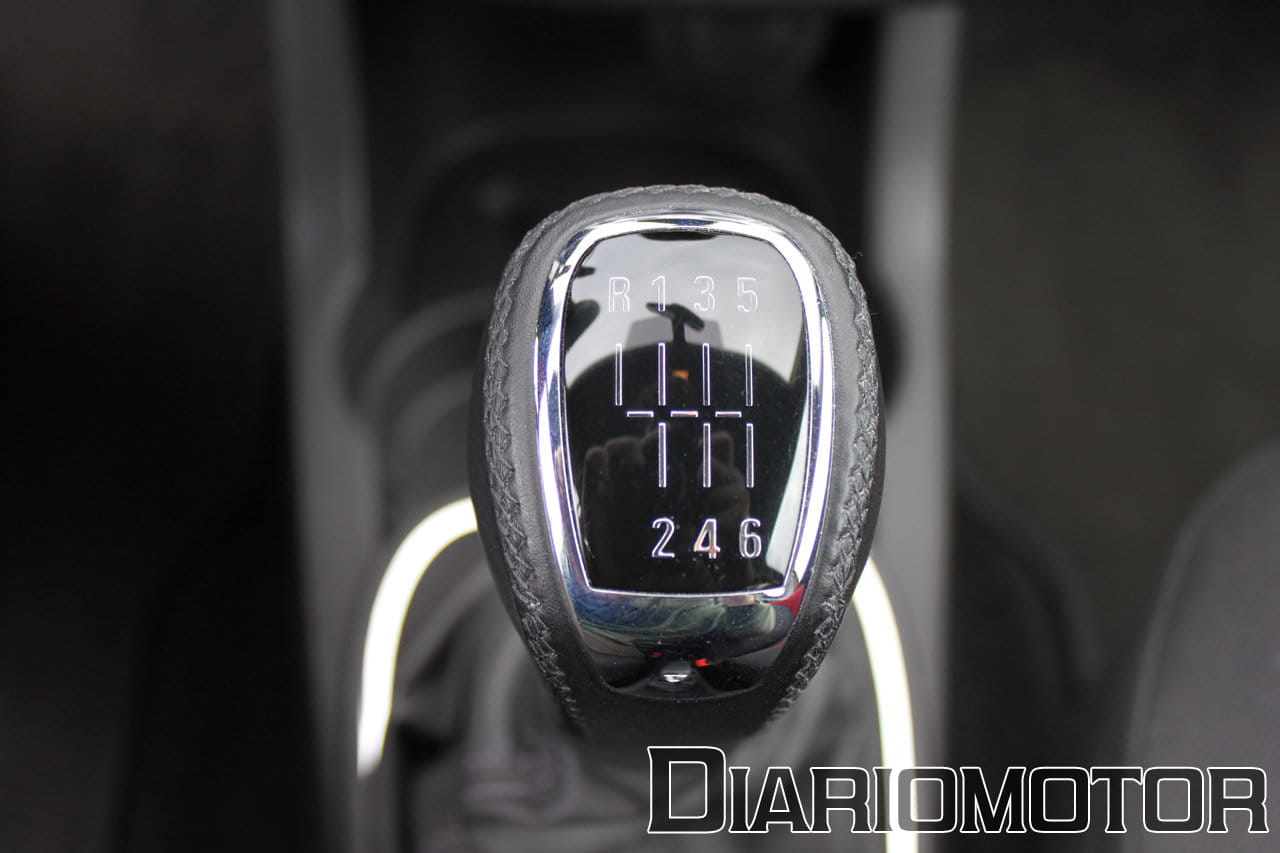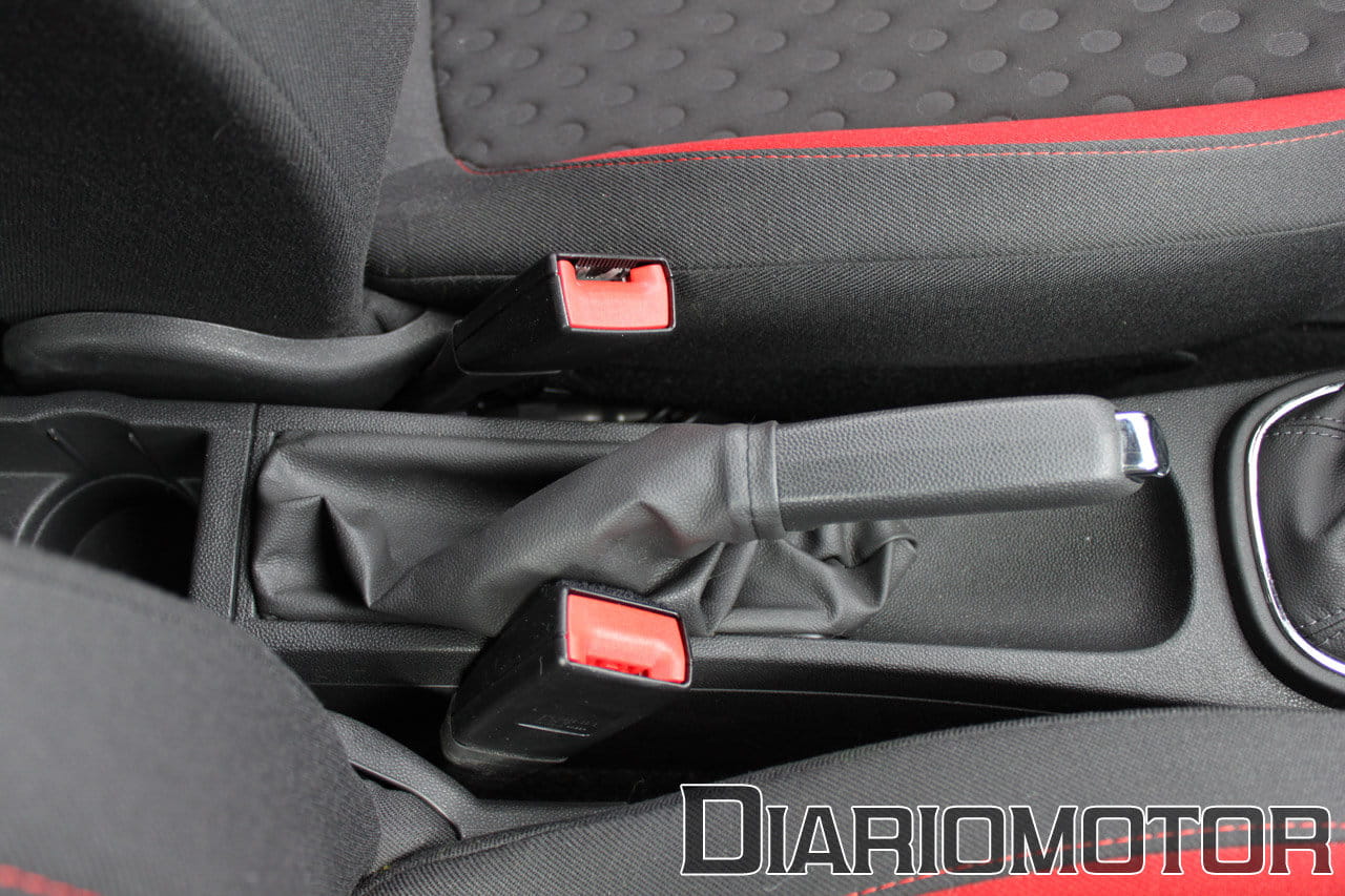 Hablaremos con detalle de estos equipos cuando hagamos el análisis de equipamiento. Bajo la consola central hay un hueco en el que caben dos latas de bebida, tiene una toma auxiliar para el equipo de sonido, huecos para monedas y tarjetas y una salida de corriente de 12 voltios. La palanca de cambios ocupa el siguiente puesto, con un pomo muy voluminoso similar al que se puede encontrar en el Corsa OPC. Aunque está a mano, tenemos que retraer un poco el brazo para introducir las marchas pares.