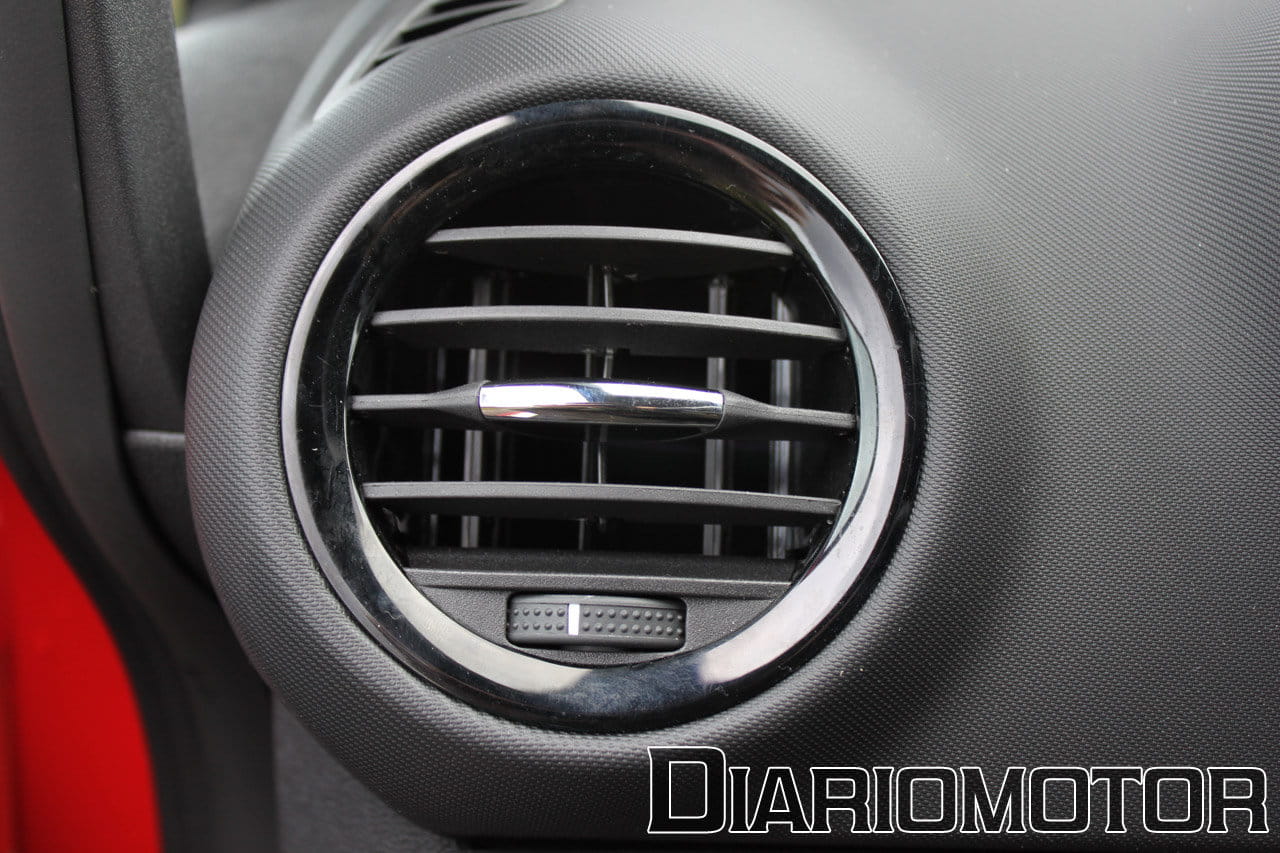 Es muy sencilla, cuentavueltas, velocímetro, nivel de combustible y una pequeña pantalla con el odómetro parcial y acumulado. No tiene aguja de temperatura del agua… pero ya os contaremos como poder conocer dicha cifra. Ante nosotros está el salpicadero, con un plástico acolchado en su parte superior – aunque de tacto algo barato – y plásticos duros en el resto del habitáculo. Los materiales empleados parecen duraderos, pero tanto calidades como ajuste de las piezas son mejorables.