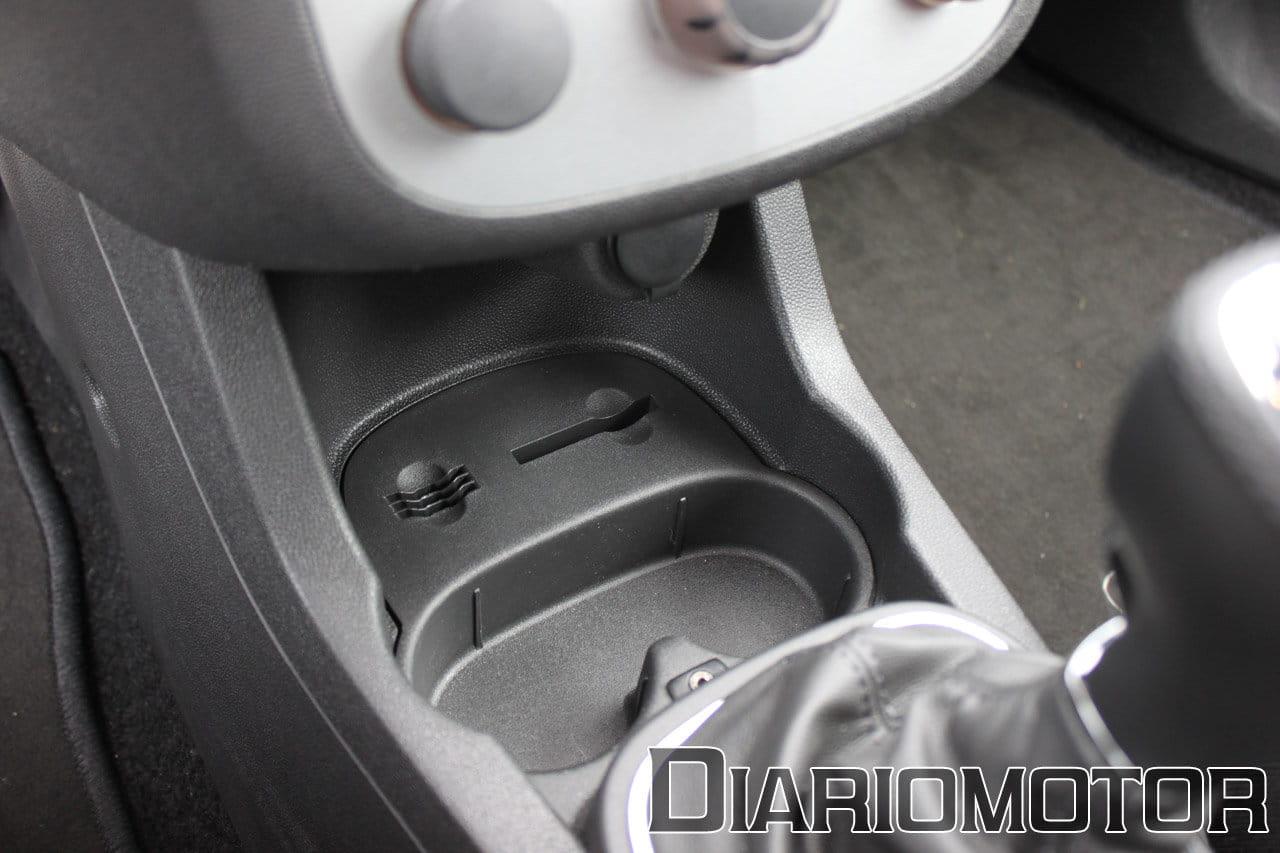 Tampoco es un problema, no cuesta acostumbrarse. Tras el freno de mano forrado en cuero, hay un hueco más para una lata. Terminando el repaso a las plazas delanteras, abrimos la guantera. Cabe la documentación y muy poco más, es bastante pequeña. En resumen, sus plazas delanteras son realmente amplias y cómodas, sorprendentes para un utilitario de 4.00 metros y con espacio más que correcto para los ocupantes, aunque hay algunos fallos de ergonomía y calidades.