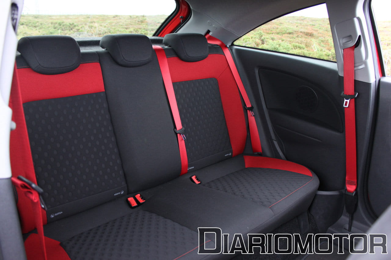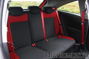 Dos personas viajarán cómodas, pero si hay tres personas el pasajero de la plaza central lo pasará algo mal, tanto por estechez como porque el túnel central le obliga a llevar las piernas levantadas. Cuenta con tres cinturones de tres puntos y reposacabezas para todos los pasajeros traseros. Se echan de menos cogeviejas asideros en el techo, y las ventanas traseras no son practicables. En las molduras laterales, bajo el altavoz del equipo de sonido, hay un hueco portaobjetos.
