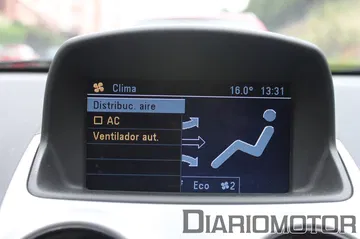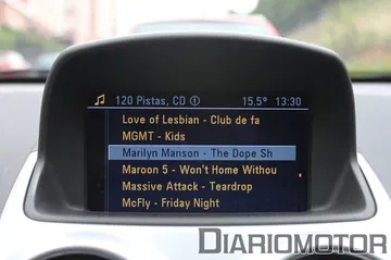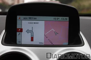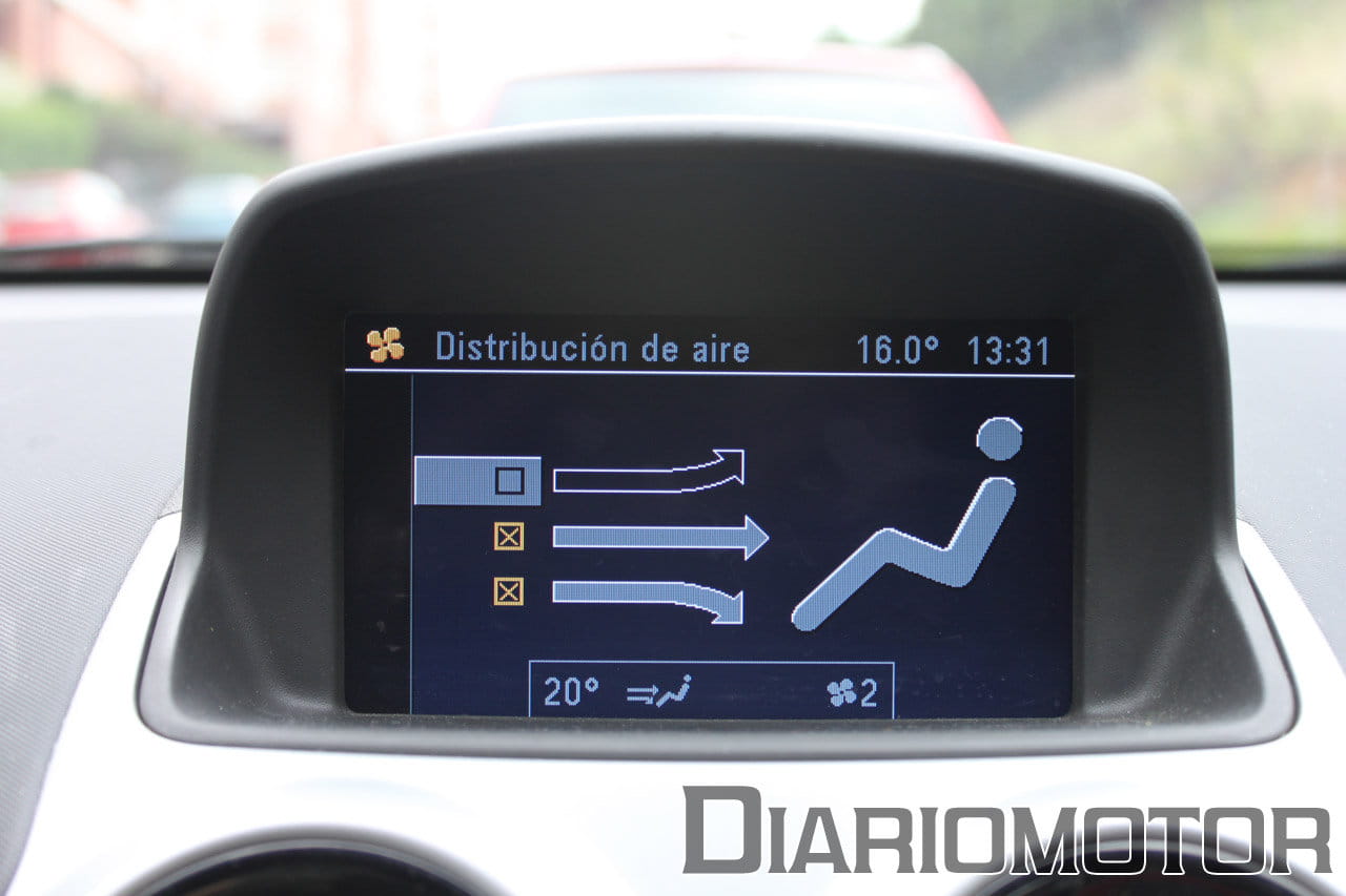 La consola central es relativamente grande, y está coronada por una pantalla LCD de unas cinco pulgadas denominada “Display Multifunción Gráfico”, en la que además de proyectarse información de infoentretenimiento, actúa de guía para el navegador opcional DVD 100 NAVI. Dos grandes salidas de ventilación muy características coronan una consola central muy profusa en botonería, con una parte superior centrada en el equipo de infoentretenimiento, la inferior en el climatizador.
