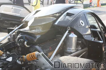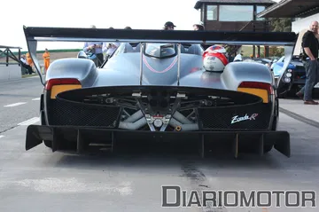Visto el nivel de los acompañantes, creía que el Pagani Zonda R me parecería uno más, pero no fué así. Al acercarme, no queda duda que es un coche de carreras. El conjunto que forma la carrocería de fibra de carbono unido a el alerón y el difusor de enormes dimensiones es espectacular. En la parte derecha del capó, encontramos un adhesivo en que apreciamos el trazado de Nurburgring con el tiempo marcado que nos recuerda el récord conseguido.