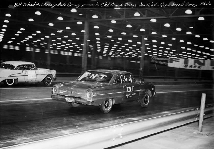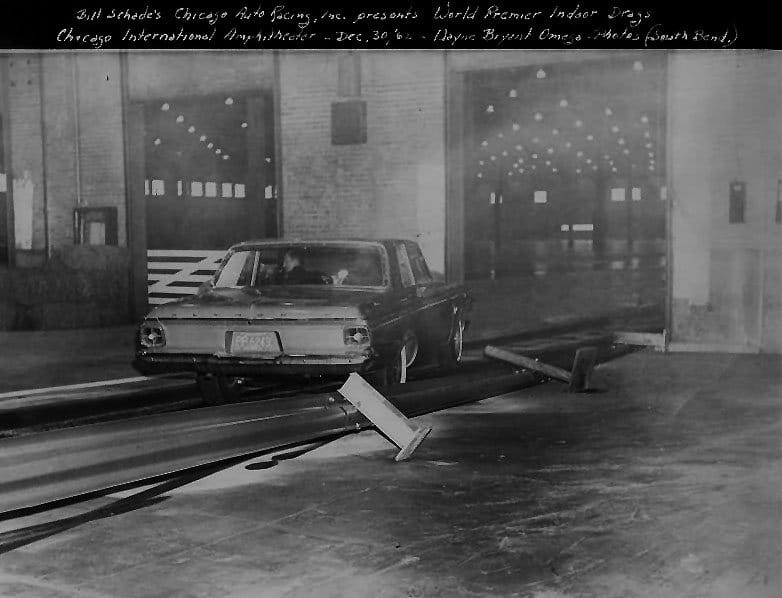El promotor de carreras Bill Schade – conocido en los círculos de la NASCAR – organizó el 30 de diciembre de 1962 la primera carrera de drag racing indoor. Para ello, se habilitaron dos carriles paralelos en el interior del pabellón de exposiciones, protegidos por las típicas barreras de metal (Armco). La intención era que los duros inviernos de Chicago no interfiriesen con el deseo de muchos jóvenes de batirse en duelo con sus máquinas modificadas. La pista era de lo más peculiar.