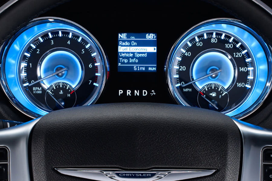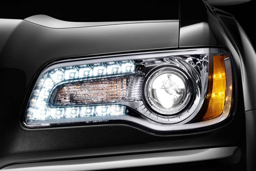 Tal y como ya adelantan estas primeras fotografías oficiales del nuevo Chrysler 300C, tras su apariencia clásica se esconde una berlina moderna que se abrirá paso con faros que integran una fila de LED con función de iluminación diurna y un nuevo y atractivo cuadro de mandos retroiluminado con luz azul.