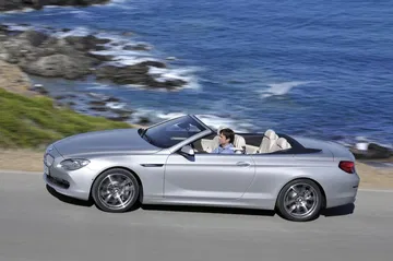 Las llantas de hasta 20 pulgadas contribuyen a una imagen dinámica, pero lejos de ser agresiva o macarra, y lejos también de la ligera extravagancia de su predecesor (uno de los diseños más controvertidos de Chris Bangle). La capota cubre las cuatro plazas del BMW Serie 6 Cabrio con calidad y premura, sólo 24 segundos gracias a un mecanismo eléctrico. Descapotarnos es más rápido, sólo tarda 19 segundos y como viene siendo habitual, puede hacerse a una velocidad de hasta 40 km/h.