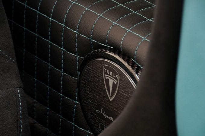 Huelga decir que el habitáculo no está de serie ni parecido. Hay fibra de carbono por un tubo y los tapizados son de Alcantara, los que a la mayoría nos gusta acariciar con cariño. Tanto los asientos como la costura utilizada son de un color azul pastel como el que ofrece Brabus con el Green Package aunque hay muchos más a elegir. El precio de un paquete tan completo e interesante como éste estará seguramente a la altura del precio del Tesla Roadster Sport.