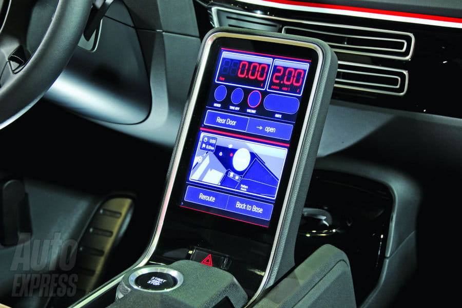 Sin embargo, aún mantiene varias soluciones estrafalarias. Por ejemplo, las puertas del lado derecho son convencionales pero en el lazo izquierdo se accionan eléctricamente para facilitar la entrada y salida a los clientes. Y el interior también denota que estamos ante un concept-car, ya que el aspecto y los materiales están más pensados para exhibirlos de cara a la galería que para ofrecer funcionalidad. No tiene desperdicio el volante, que parece sacado de una furgoneta de hace 15 años.