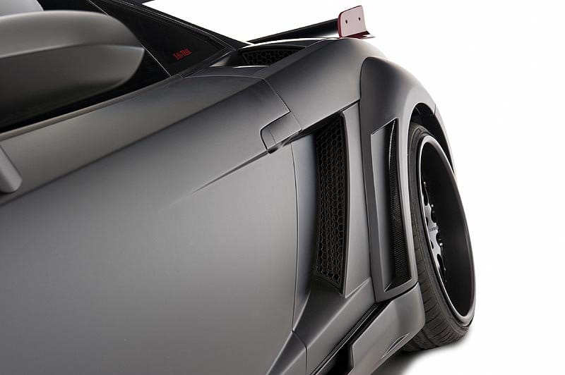 La tradición marca que los modelos con motores V12 de Lamborghini no lleven consigo las famosas puertas de tijera pero eso lo resuelve Hamann poniéndoselas por su cuenta. Una “originalidad” que contrasta con el color negro mate estampado en la carrocería. Menos mal que se compensa con el rojo granate del spoiler, la puerta del maletero, la toma de aire del techo o los bornes de los alerones.