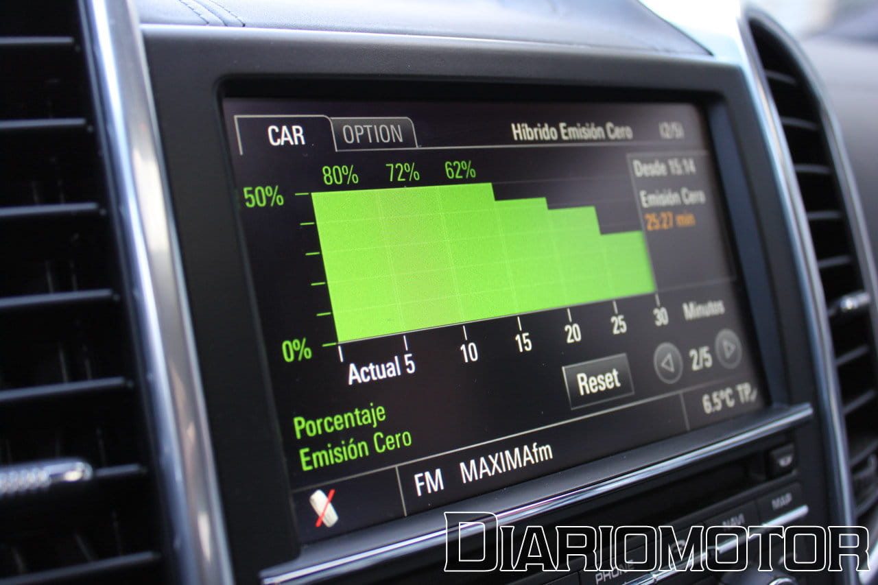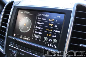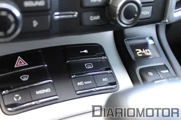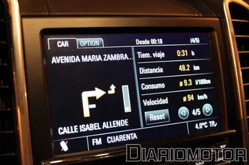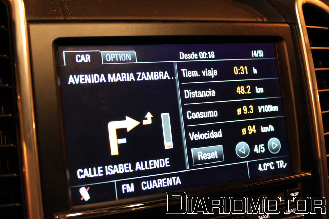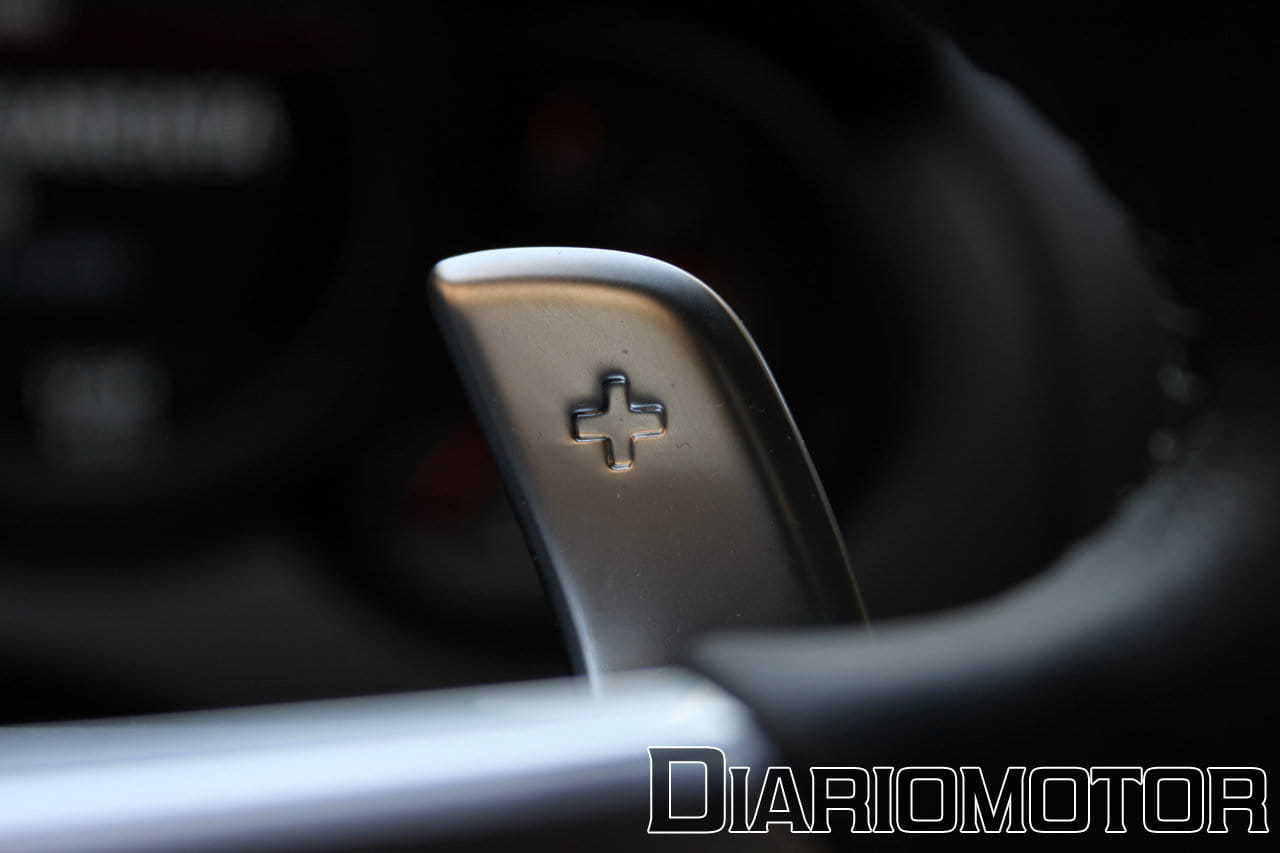 A la derecha del cuentavueltas está la sorpresa de la instrumentación, una pantalla LCD perfectamente integrada en uno de los relojes que puede mostrar todo tipo de información del ordenador de a bordo, infotainment o navegación. Es especialmente útil y práctica si debemos hacer uso del guiado GPS. A su derecha cerramos filas con un indicador de temperatura del agua y nivel de combustible. El volante no es multifunción, es un volante deportivo opcional con levas metálicas para el cambio automático tras el mismo. Su regulación en altura y profundidad es eléctrica.