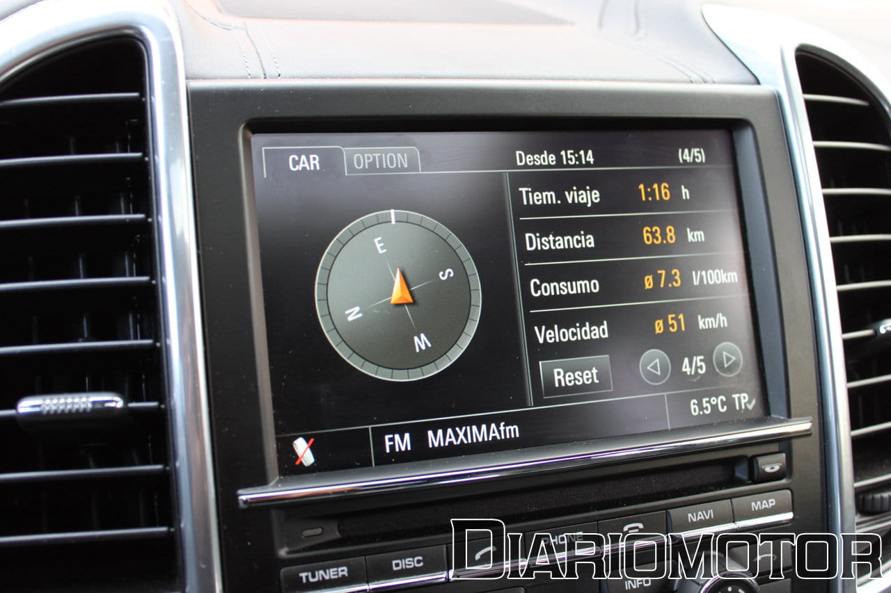 Sigue habiendo un Cayenne S con motor 4.8 V8 y prestaciones superiores al híbrido, pero en cuanto a relación consumo-prestaciones ni siquiera el Cayenne Diesel le llega a la suela del zapato. El Cayenne que recogíamos en la sede de Porsche en Madrid es una unidad de prensa cargada de equipamiento extra que a pesar de ser muy nueva, ya tenía 18.000 km en el odómetro, hechos en unos pocos meses. Es decir, el rodaje estaba más que completado y pudimos disfrutar de las máximas prestaciones con un consumo ya estabilizado.