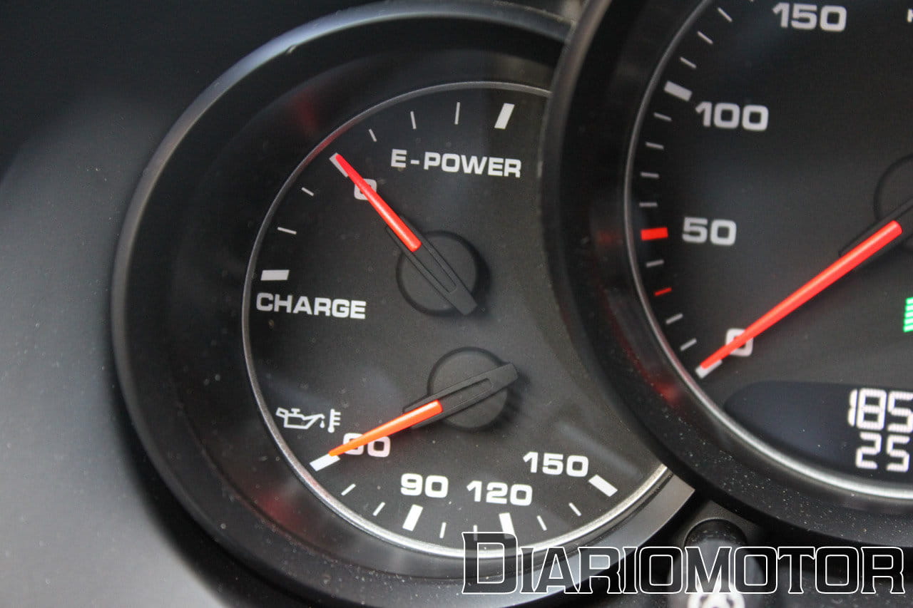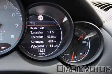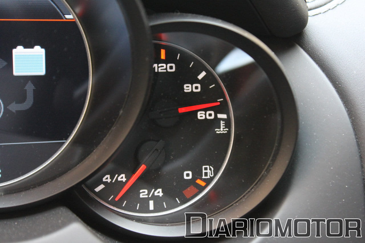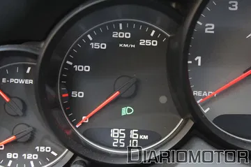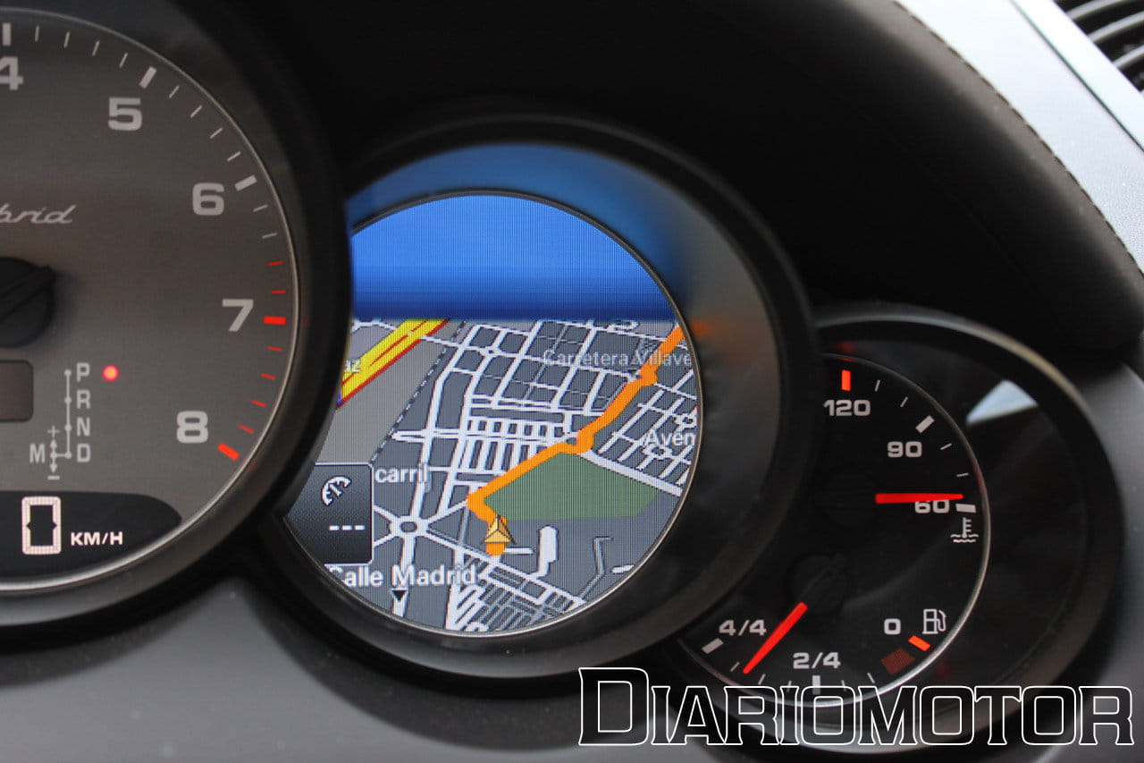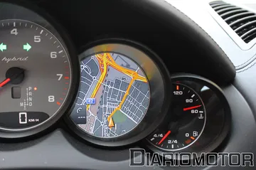 La instrumentación también está en línea con los demás Porsche, aunque nuestro vehículo de pruebas sea un híbrido. El cuentarrevoluciones está en el centro, flanqueado a su izquierda por un velocímetro con una escala bastante radical. Sería poco práctico si ni pudiésemos ver la velocidad a la que circulamos en un pequeño cuentakilómetros digital bajo el reloj central. A su izquierda, se vigila la temperatura del aceite – gran detalle – y el estado de funcionamiento de la vertiente eléctrica del sistema híbrido.