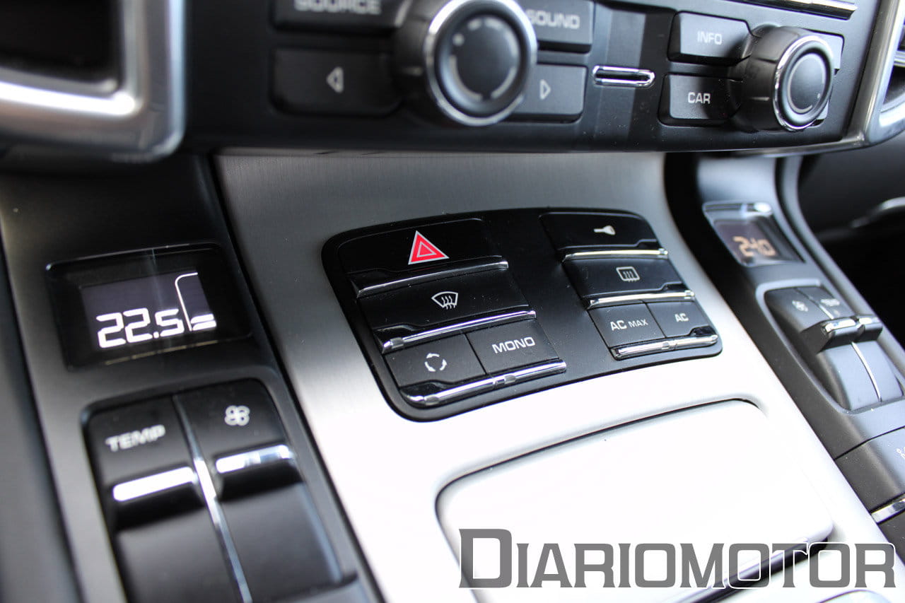 Hay dos agarraderas en la consola central, para sujetarse en conducción off-road o ayudarse a acceder al habitáculo. Aún hay más botonería en el Cayenne, en el techo por ejemplo se pueden desactivar los sensores de aparcamiento, además de abrir el techo solar. Sin embargo, si hay algo en lo que destaca el Cayenne es en calidad. Todos los materiales son de alta calidad, deliciosos al tacto, los ajustes son simplemente perfectos y los acabados son superiores a los de cualquier coche que haya probado en mi vida.