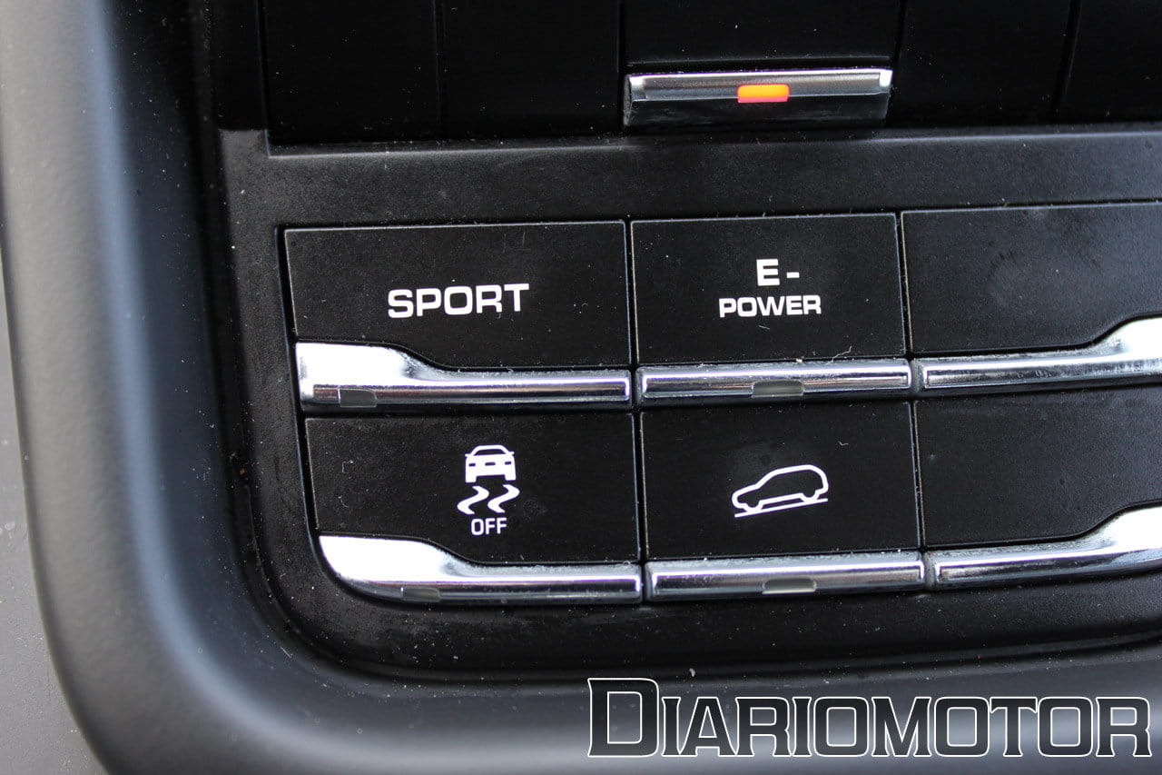 Los warnings, el botón de recirculación, el desempañador… todos están algo escondidos delante de la palanca de cambios. A veces pueden resultar algo incómodos de pulsar, con conocernos su posición tampoco deberíamos tener problemas. Ya casi en el túnel de la transmisión está la regulación en altura de la suspensión neumática, la selección de dureza de la suspensión PDCC, el ajuste Sport para el control de estabilidad, el control de descenso de pendientes o el botón que activa el modo 100% eléctrico de este full-hybrid.