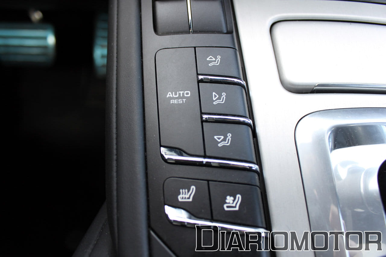 Abrimos la puerta y nos sentamos en el asiento del conductor. Es muy amplio en todas sus cotas, está forrado de un cuero negro de alta calidad y tiene todos los posibles reglajes de tipo eléctrico, incluso con memoria para el copiloto. Es más, el asiento se retrae automáticamente para que acceder a la plaza sea más cómodo. Aún así, es un asiento con pocos apoyos laterales – más en banqueta que en respaldo – y más orientado quizá a una conducción confortable que deportiva debido a la configuración de estos apoyos.