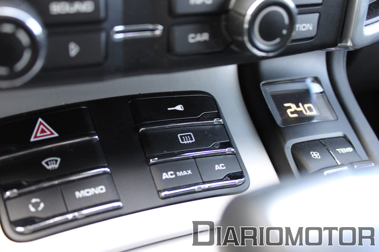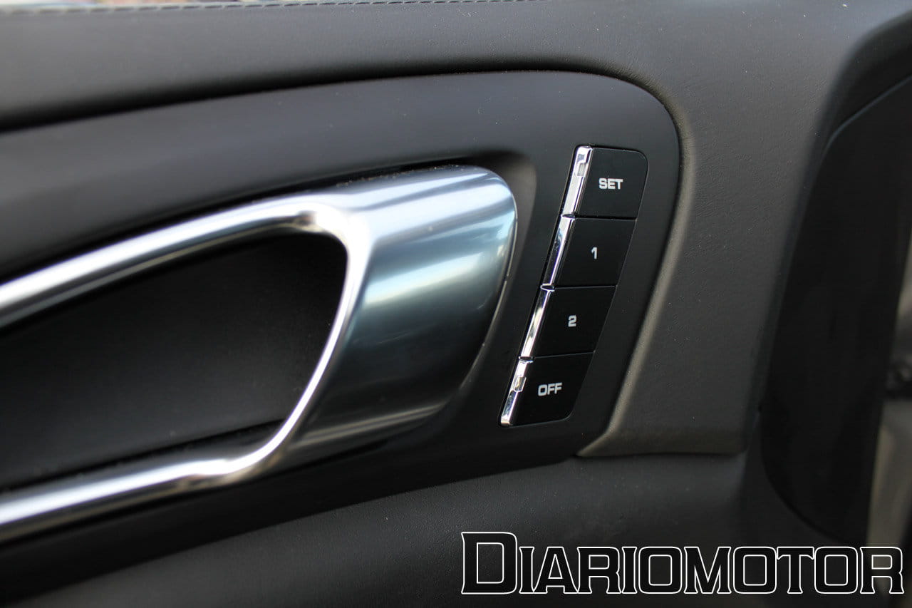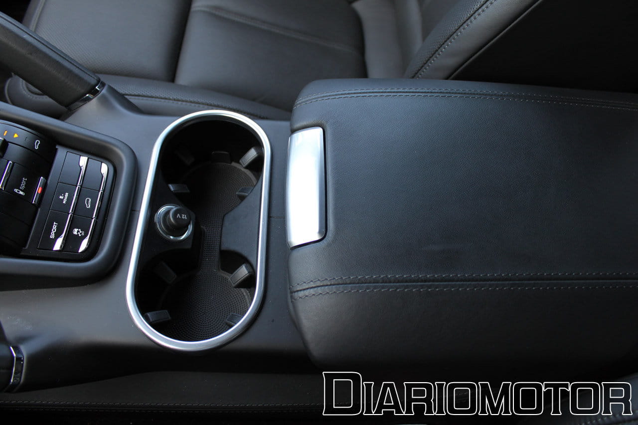 Si hay algo que parece metal, es metal, no imitación. El salpicadero está forrado en cuero y tanto los pilares como el techo están tapizados en Alcantara de color oscuro. El logotipo de Porsche está estampado en el reposacabeza e incluso el tapizado de las puertas tiene un tacto impresionante. La guantera es iluminada y refrigerada. En cada una de las puertas cabe una botella de litro y medio de agua. En el túnel central hay un cajón que sirve de reposabrazos y alberga las entradas auxiliares del equipo de audio.