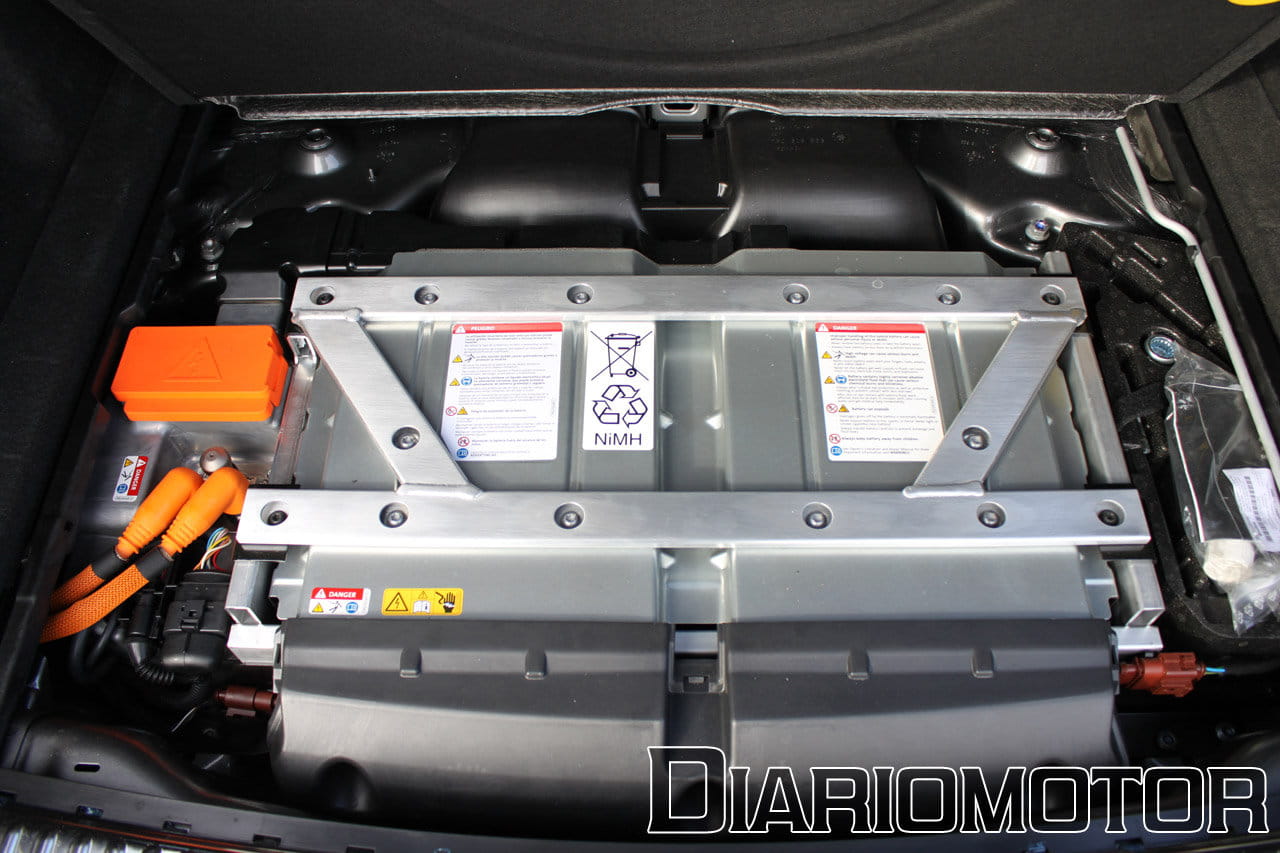 El maletero tiene una forma completamente regular, muy aprovechable. La boca de carga tiene una altura media para un SUV y no hay salto entre el borde y el espacio de carga. Está forrado en una moqueta de tacto muy bueno. Tiene 580 litros de capacidad. Si abatimos los asientos se forma una superficie de carga completamente plana de 1.680 litros de capacidad. Bajo el piso la sorpresa es levantar la tapa y encontrar las baterías Ni-Mh del sistema híbrido, convenientemente protegidas.