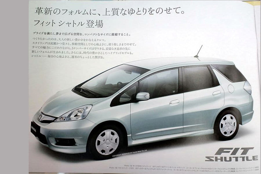 Cada vez estoy más convencido de que uno de los mercados automovilísticos más extraños es el japonés. De vez en cuando surgen novedades específicas para ese mercado que serían impensables que tuvieran éxito en Europa o EEUU, como el caso que vemos aquí. Recientemente han aparecido filtradas las imágenes del catálogo del Honda Fit Shuttle, una especie de versión alargada del Honda Fit, bautizado en Europa como Honda Jazz.