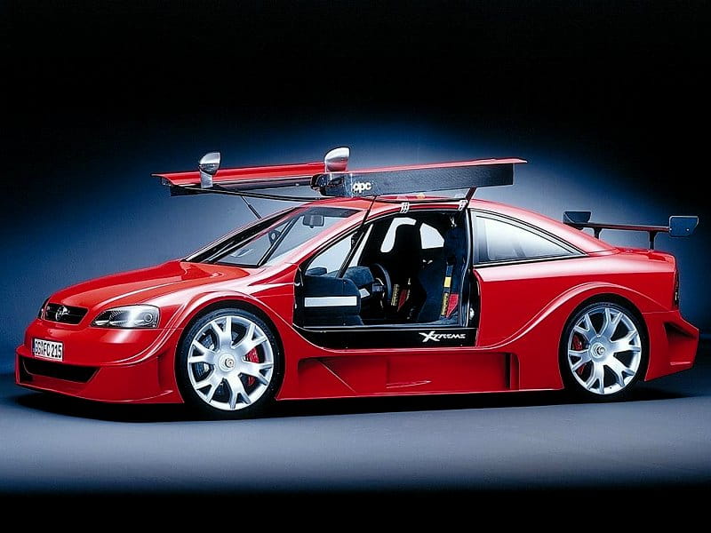 El Opel Astra Coupé OPC Xtreme se presentaba en 2001 en el Salón de Ginebra como un hipotético superdeportivo de calle basado en el deportivo de carreras que por aquel entonces competía en el DTM (campeonato alemán de turismos). Lo primero que llamaba la atención es su kit aerodinámico, su carrocería rebajada hasta casi rozar el asfalto, un alerón gigantesco, un difusor con cuatro salidas de escape y unas sugerentes puertas de apertura en alas de gaviota.