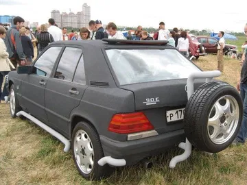 Al parecer, este coche se encuentra en Rusia, un país especialmente predispuesto a ofrecer este tipo de tuning casero. Por último, ni que decir tiene que el nombre de Mercedes 90E ha sido puesto por el propio dueño, que debió pensar que al ser de tamaño más pequeño bastaría con hacer también más corto el nombre.