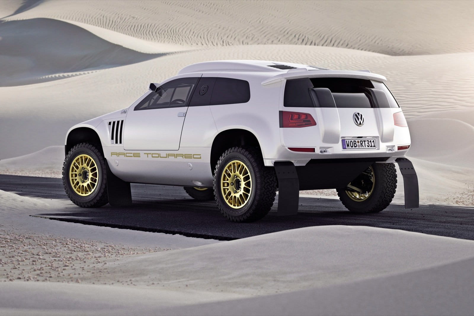 El motor sigue siendo el 2.5 TDI de 310 CV empleado en el Volkswagen Race Touareg 3 empleado este mismo año en el Rally Dakar. Tampoco faltan ciertas concesiones al lujo para satisfacer a los más adinerados del emirato árabe con detalles dorados e incluso unas llantas doradas de 18” firmadas por BBS en sustitución de las de 16” del modelo de competición. La carrocería está pintada en color Magic Morning, que no es más que un blanco brillante con ciertos matices dorados.