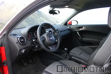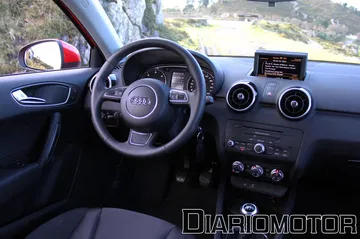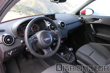 Me siento en el asiento del conductor del Audi A1 y cierro la puerta. El sonido es pesado y sordo, impropio de un utilitario. Empiezo a fijarme en los detalles y acabados y por un momento pienso si me habré confundido y estoy sentado en un Audi A3. Audi ha trabajado mucho las calidades del habitáculo, y eso se demuestra en el plástico de tacto blando empleado en el salpicadero. La parte inferior y la consola central son plástico duro, pero de acabados perfectos, totalmente ausente de bordes ásperos.