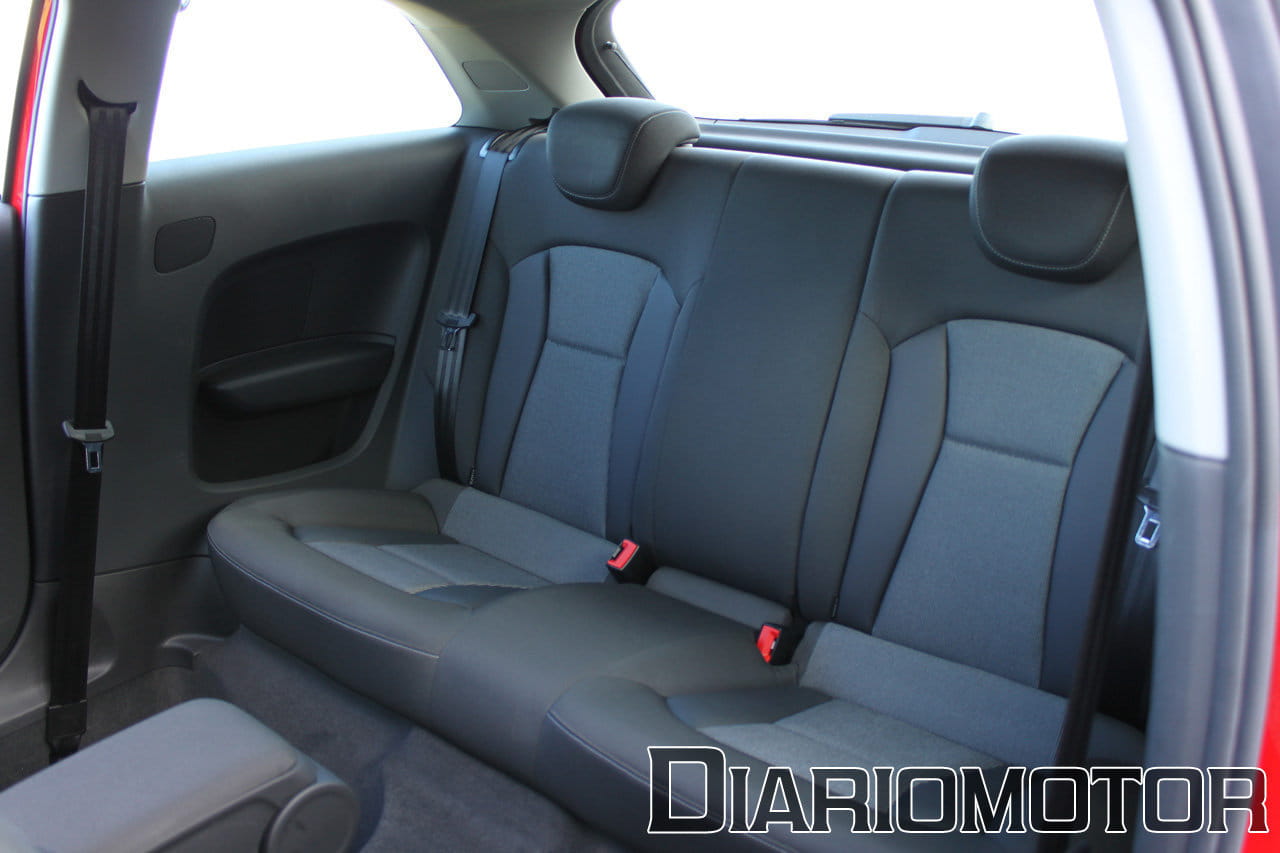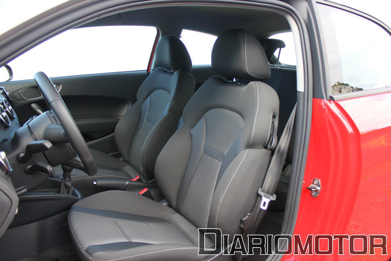 El Audi A1 es un utilitario homologado para sólamente cuatro plazas, por lo que no hay problemas algunos de amplitud entre los dos pasajeros. Lo que sí podría pasar es que si esos pasajeros miden más de 1.80 metros su cabeza va a estar muy cerca del techo, prácticamente en contacto. Si el asiento delantero está retraído puede que sus rodillas acaben encajadas en dicho asiento. Las plazas traseras son algo justas en dicho sentido, aunque permiten viajes largos sin mayores problemas.