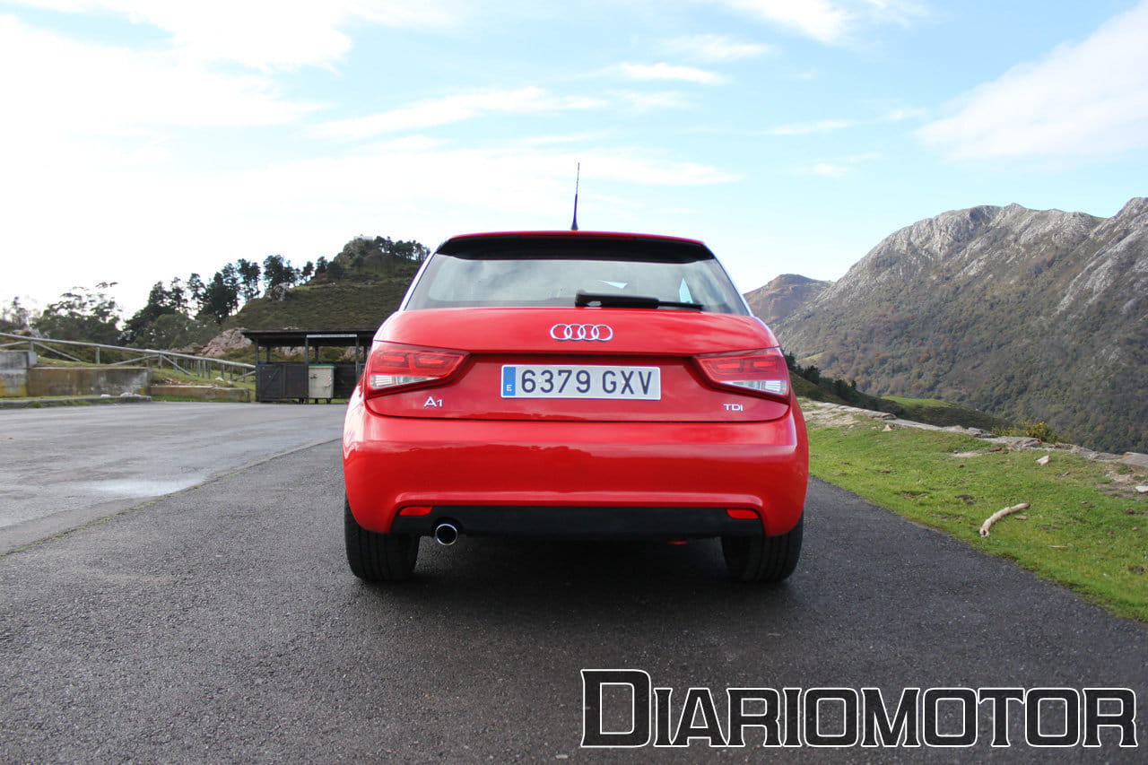 Desde atrás el diseño del coche divide a la opinión. Hay gente que lo ama, y otros lo detestan. En parte es más fuerte por el diseño personal de las ópticas traseras. Son 100% LED, se iluminan con un curioso patrón y son de gran tamaño. Un spoiler de dimensiones correctas corona el portón del maletero y en la parte baja del paragolpes asoma tímidamente una cola de escape cromada. Versiones potentes como el A1 1.4 TFSI de 185 CV llevan dos colines de escape, el TDI de 105 CV tiene que conformarse con una.