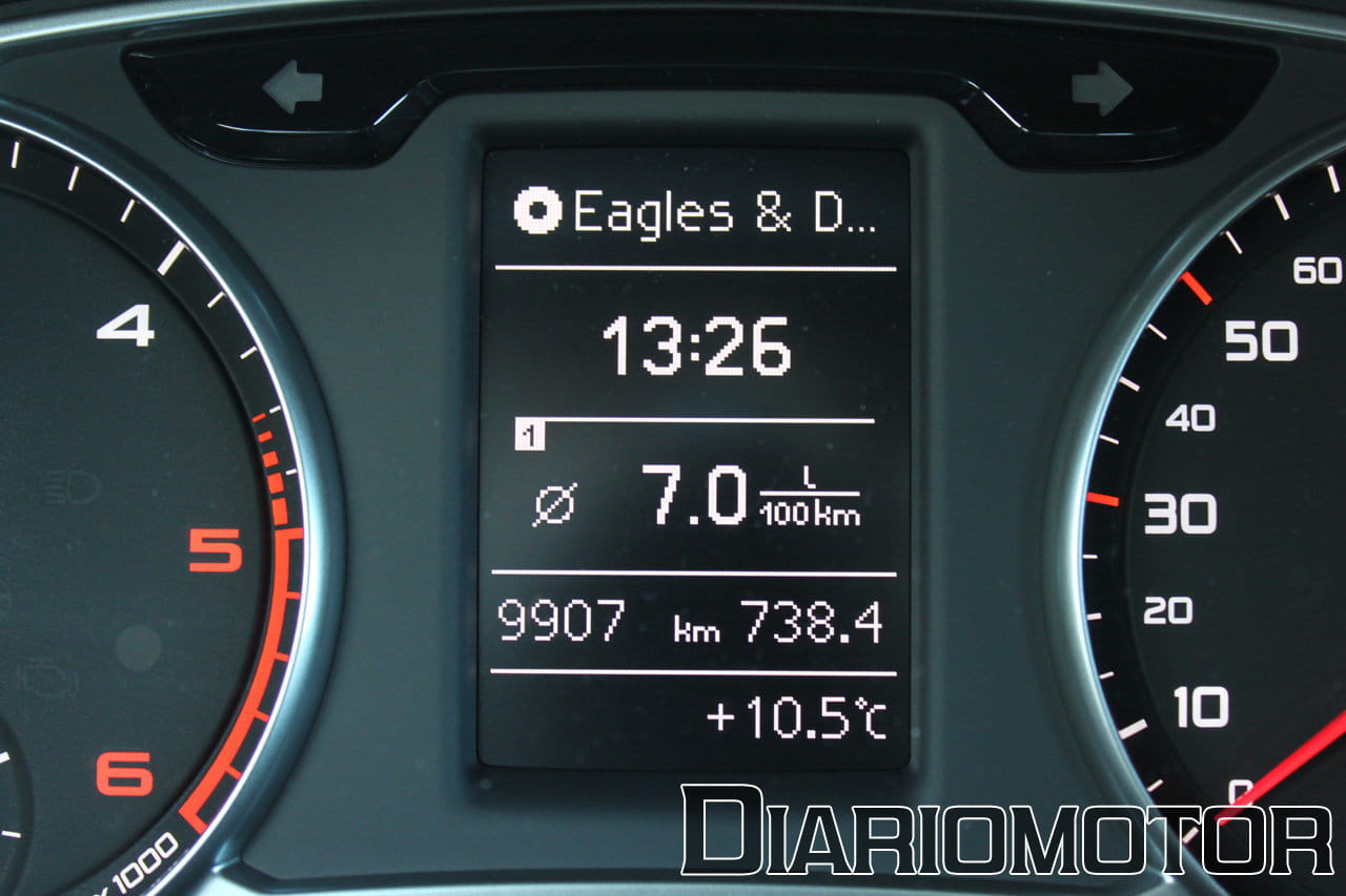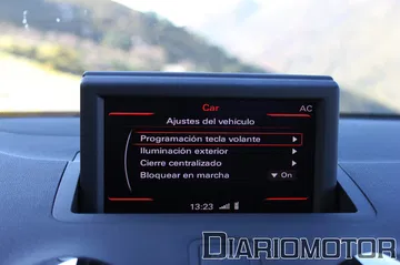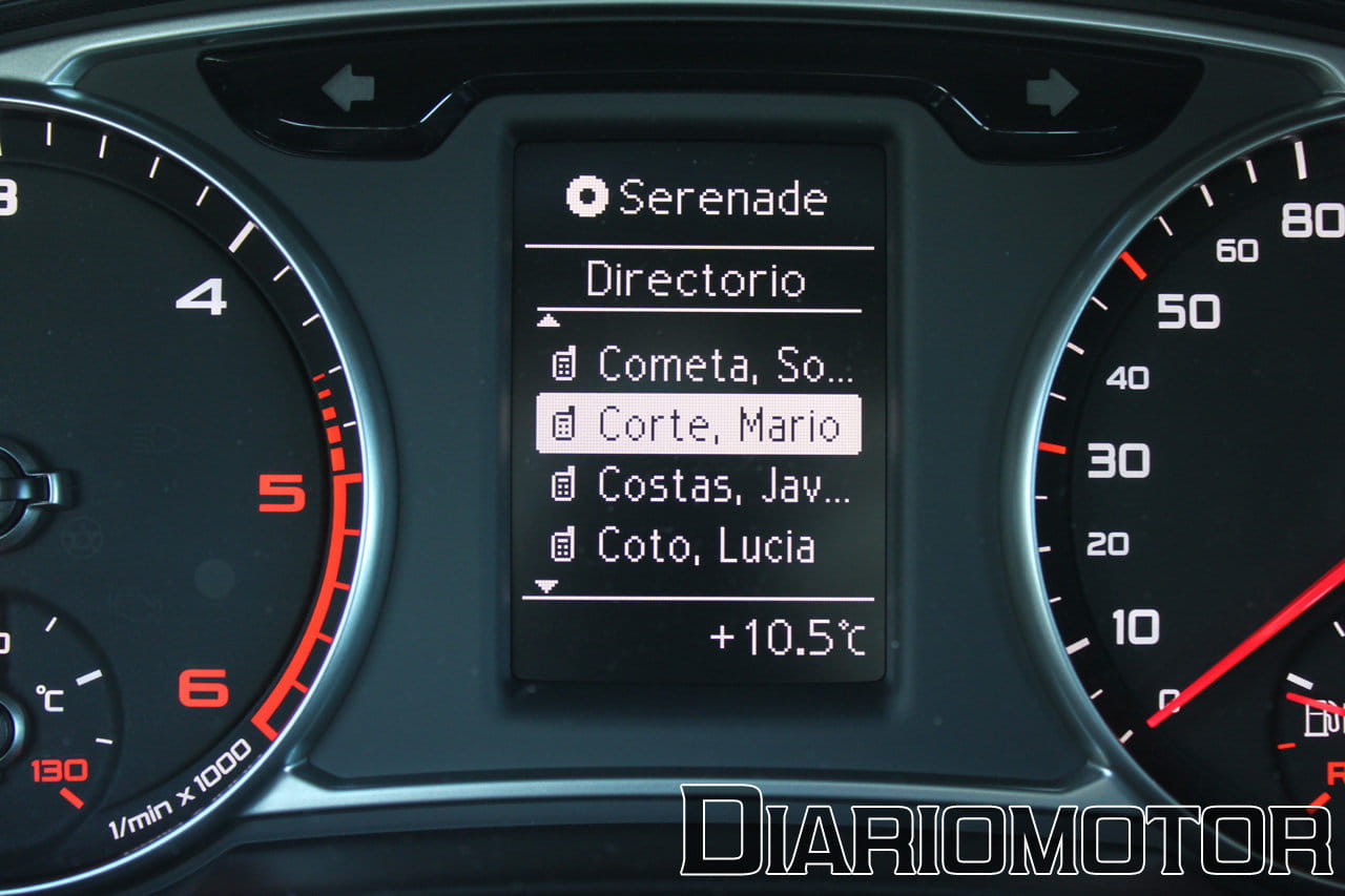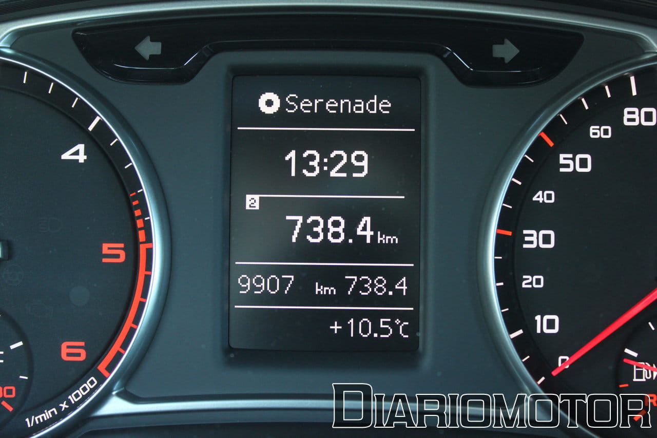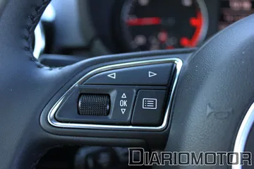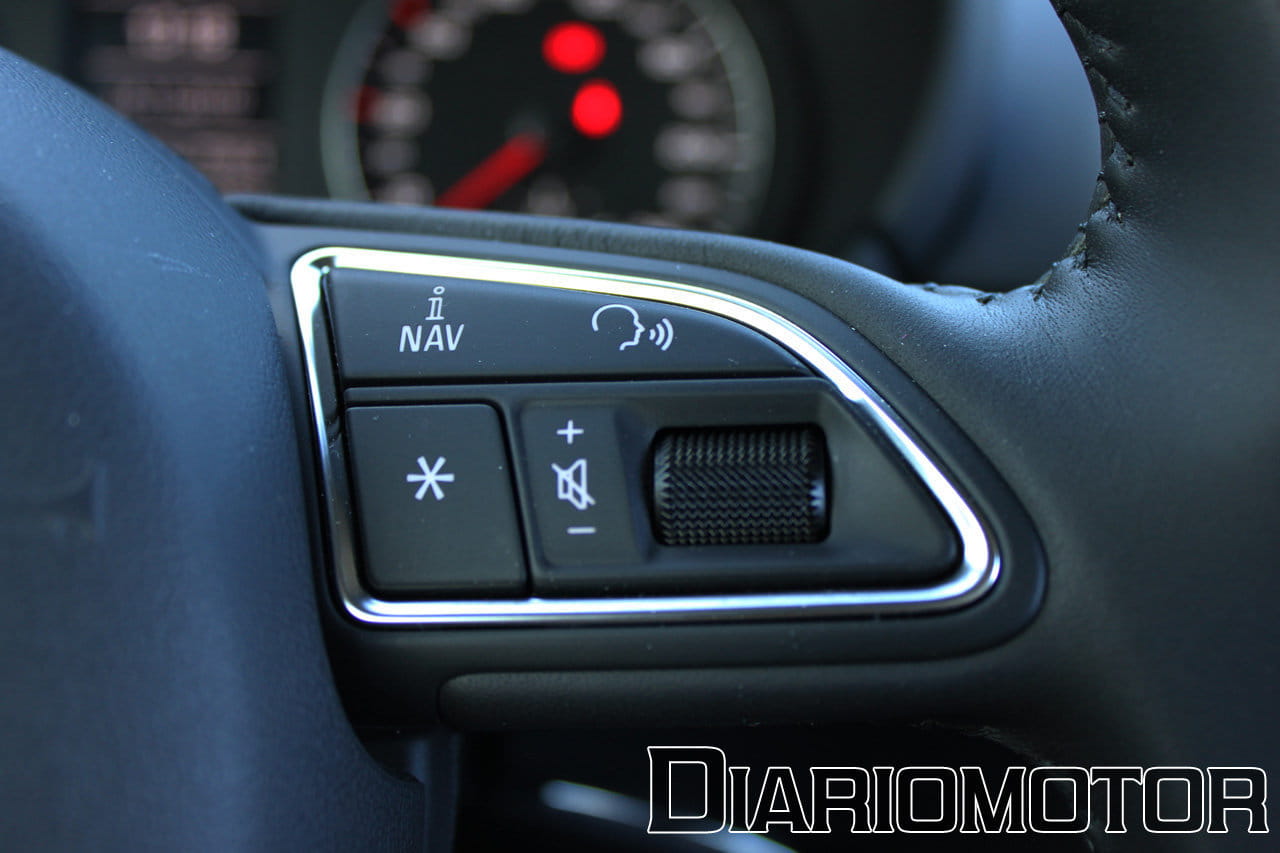 Es un defecto sin demasiada importancia, pues se olvida en cuanto nuestras manos se posan sobre un volante muy similar al del Audi TT. Forrado en cuero de alta calidad, tiene mandos para regular el sonido, atender llamadas o manejar el navegador. La salida de los aireadores centrales es muy llamativa, situada por debajo de la pantalla LCD que corona la consola central. En ella se muestra la información de infotainment y la configuración del coche, que manejamos a través del mando del MMI.