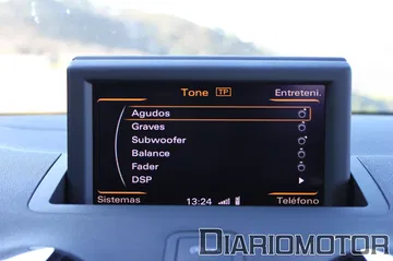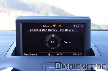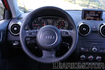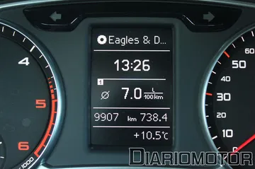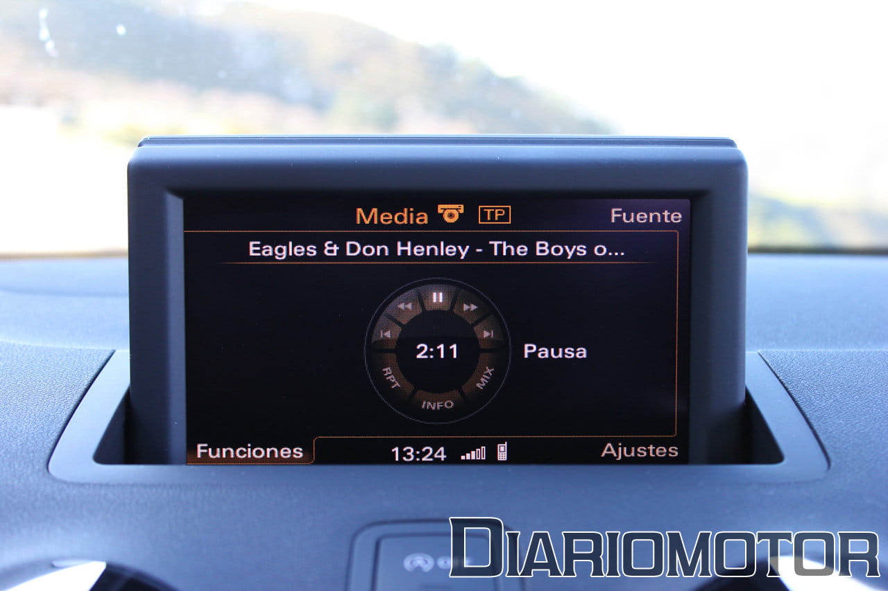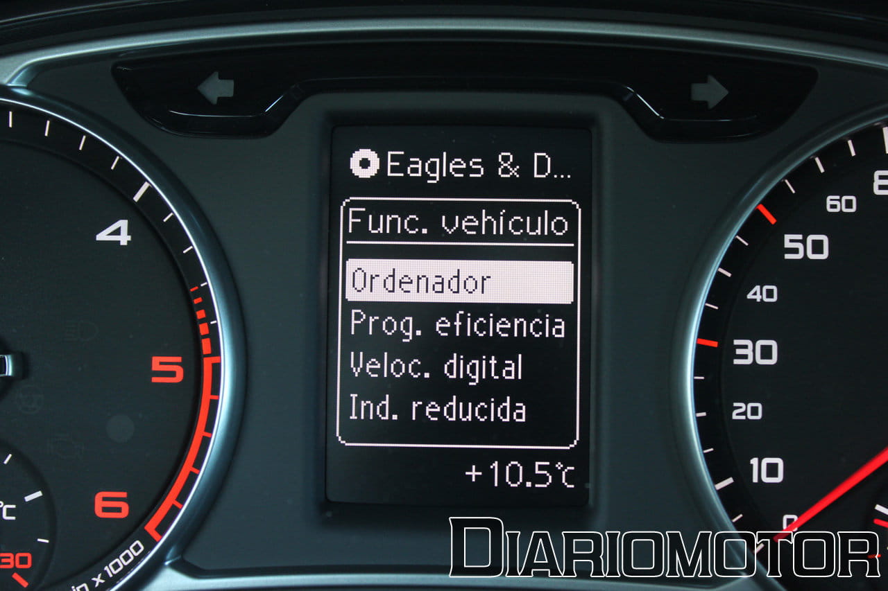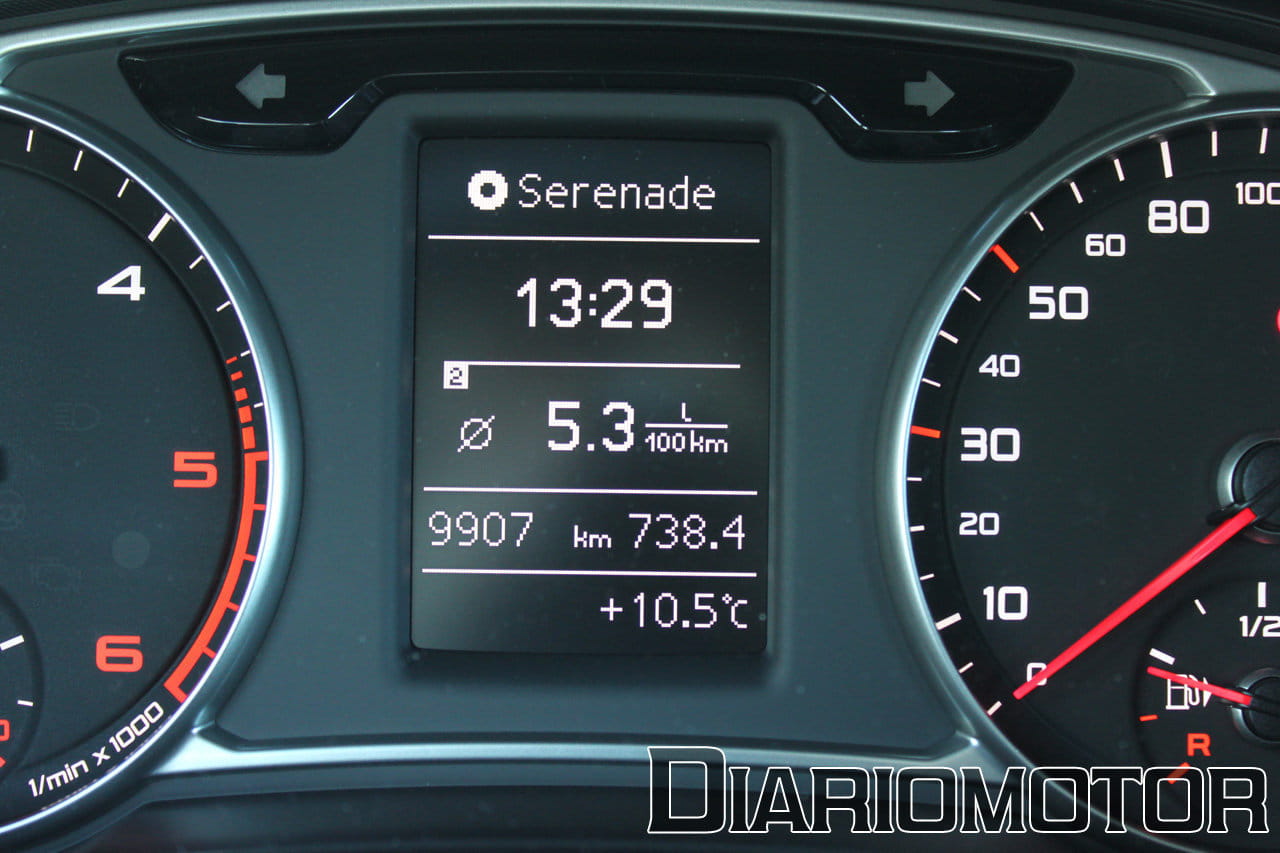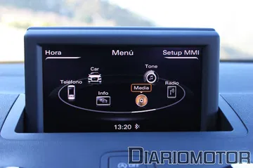 Es un defecto sin demasiada importancia, pues se olvida en cuanto nuestras manos se posan sobre un volante muy similar al del Audi TT. Forrado en cuero de alta calidad, tiene mandos para regular el sonido, atender llamadas o manejar el navegador. La salida de los aireadores centrales es muy llamativa, situada por debajo de la pantalla LCD que corona la consola central. En ella se muestra la información de infotainment y la configuración del coche, que manejamos a través del mando del MMI.