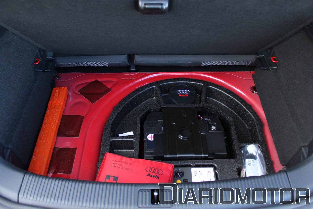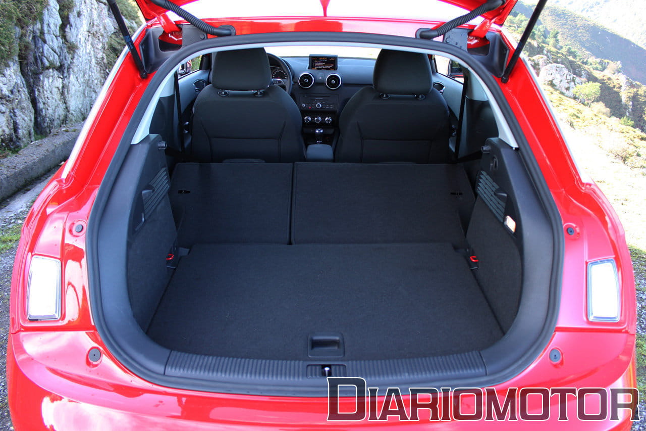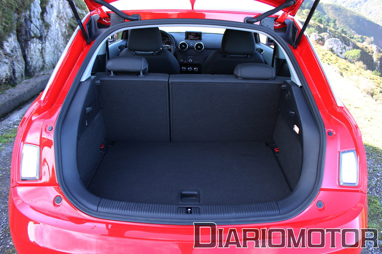 Aunque no es un coche grande, el maletero del Audi A1 es de los mejores de su segmento. Tiene 270 litros de capacidad y sus formas son perfectamente regulares. Está iluminado y el borde de carga no queda lejos del suelo. Además, de manera poco habitual en los utilitarios, el salto entre borde carga y superficie de carga apenas existe. Abatiendo los asientos traseros en configuración 40:60 obtenemos una superficie de carga casi plana de 920 litros de capacidad.