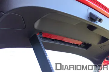 El piso del maletero es extraíble, y bajo el mismo encontramos la batería, herramientas y un kit antipinchazos. No tenemos que sujetarlo para acceder al compartimiento inferior pues unos enganches laterales lo mantienen abierto, un detalle que no he visto en ningún otro vehículo por el momento. En un compartimento del propio portón se encuentran ubicados los triángulos de emergencia. Si os habéis fijado en las imágenes, a ambos lados del maletero hay luces, que se ven con el mismo abierto.