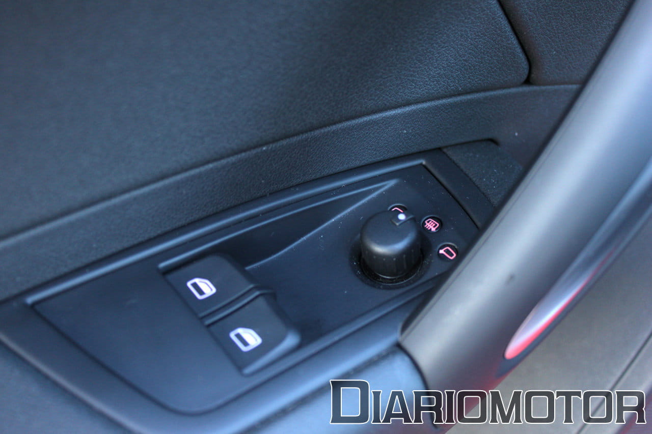 No es molesto, pero mi rodilla va apoyada sobre la consola central, es inevitable. No hay quejas a la hora de ajustar el volante y aún queda un buen trecho hasta que mi cabeza toque con el techo. Tengo muy a mano en la zona de la puerta los controles de elevalunas y la regulación de los retrovisores. Un detalle que no me gusta es la ruleta de regulación, más propia de un Seat Ibiza que de un Audi que parte de casi 16.000€. Se supone que el sobreprecio, además de los múltiples detalles premium del coche, paga también este detalle que desluce ligeramente al conjunto de la puerta.
