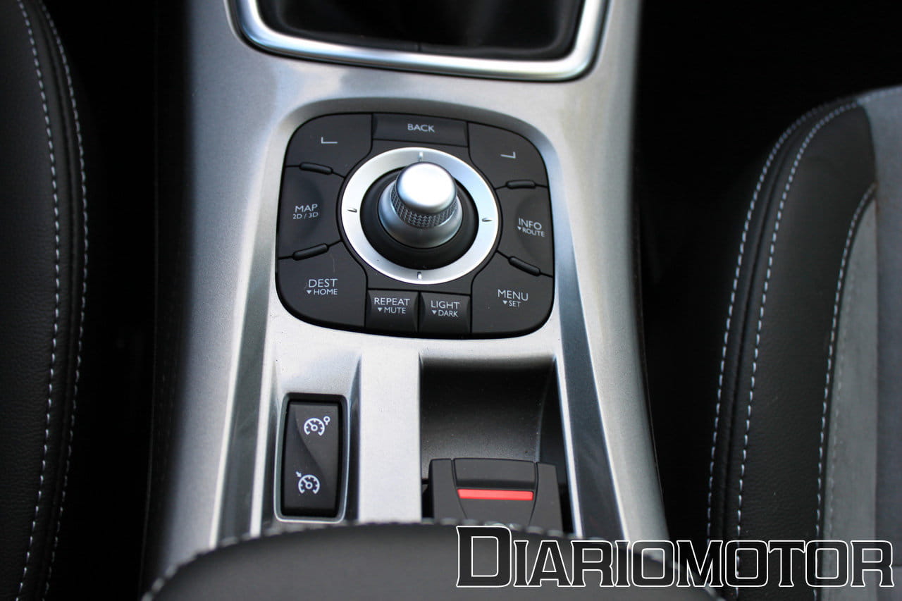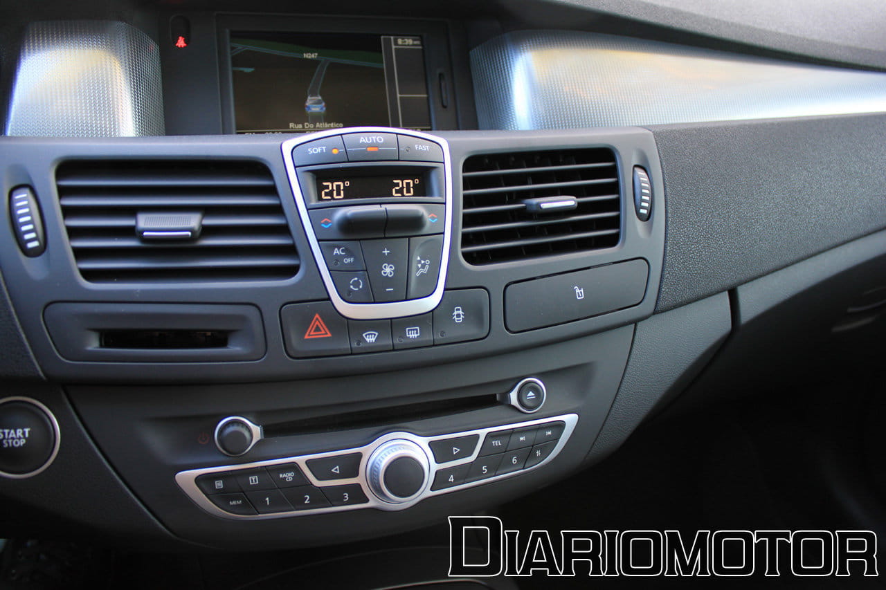 La versión probada era un modelo GT cargado de extras, prácticamente un full-equipe. Lo cierto es que el habitáculo retiene unos acabados impresionantes, muy agradables al tacto y la vista. El salpicadero es de una sola pieza y cuenta con una zona central terminada en metal de tacto rugoso. Un navegador Carminat TomTom se integra a la perfección sobre la consola central, cuya parte inferior también muestra los mandos de la radio y unos controles simplificados para la climatización.