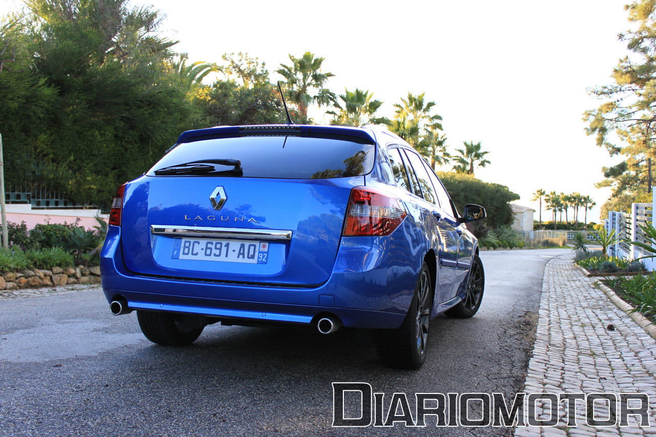 Los faros son más agresivos y angulosos, y el paragolpes adopta una forma más convencional con una marcada toma de aire en posición baja, con una rejilla en color negro de lo más atractiva. Los faros antiniebla quedan enmarcados por unas pestañas plateadas muy bonitas. El aspecto de este familiar es ahora deportivo, alejado de los planteamientos habituales del segmento. Por lo que respecta al resto del vehículo, no hay cambios a destacar sobre la previa versión GT del Laguna.