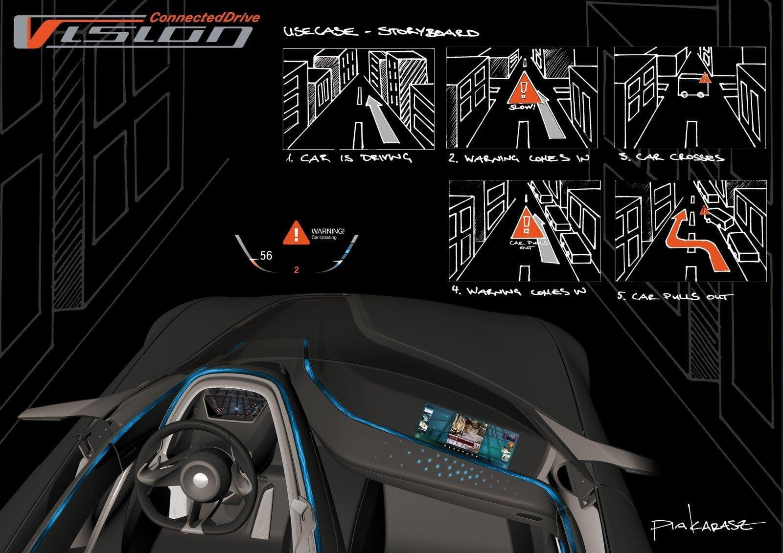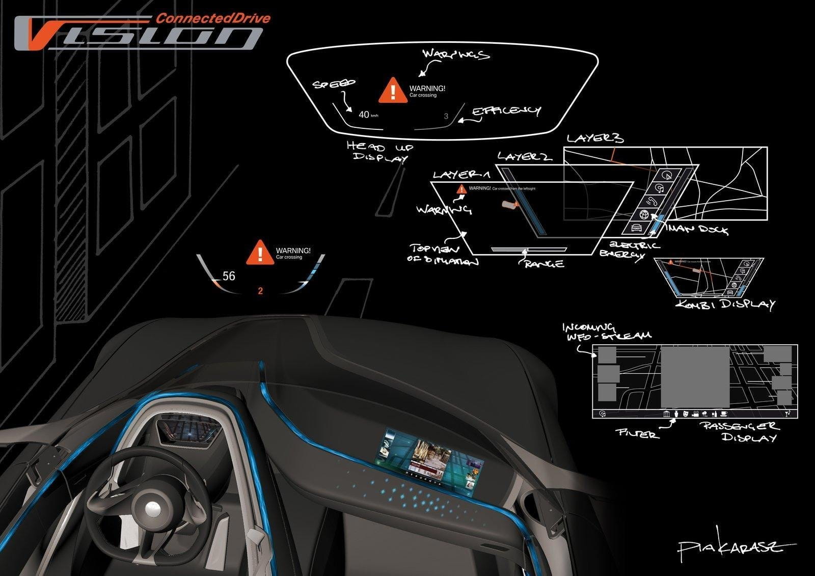 Podría decirse que estamos ante una versión descapotada inspirada en el impactante BMW Vision EfficientDynamics Concept, en el cual se basa en aspectos como el frontal, aunque por ejemplo las puertas retráctiles eléctricas con apertura hacia abajo recuerdan directamente a las del BMW Z1. El Vision ConnectedDrive apuesta más por ser una muestra de tecnología a bordo, que podríamos ver cómo en un futuro indefinido llega a coches de producción en serie.