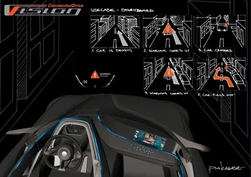 Como su propio nombre indica, estamos hablando de un coche “conectado” permanentemente, no sólo con Internet, la red de redes, sino con comunicación de coche a coche y múltiples aplicaciones, microcámaras y sensores que hacen énfasis en la seguridad, para evitar accidentes. Gracias a los sistemas de realidad aumentada, el coche reconocería todos los elementos que le rodean, como objetos, peatones u otros vehículos.