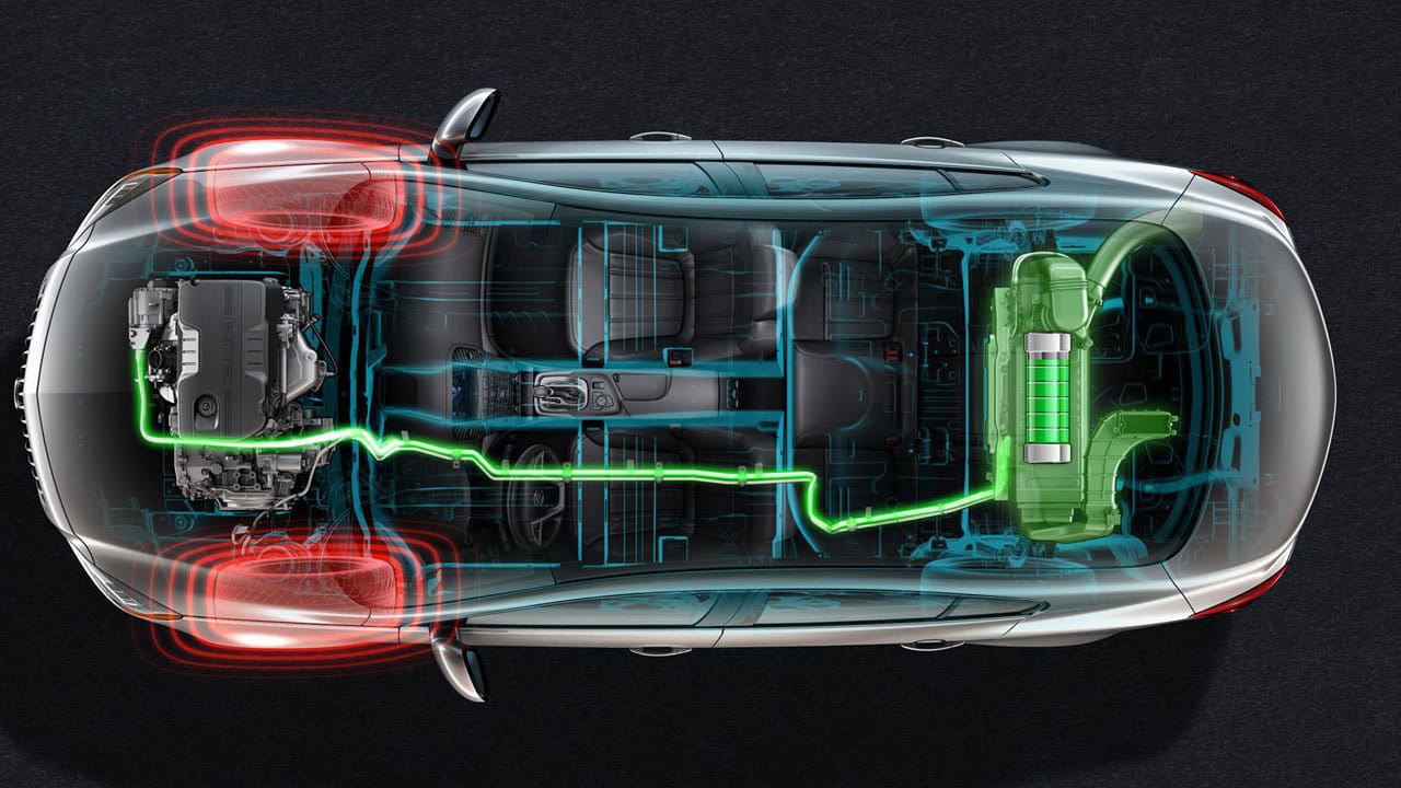 Digo que está pensada para EEUU porque la motorización de gasolina del sistema híbrido es exclusiva de allí. Se trata de un bloque 2.4 tetracilíndrico atmosférico de 182 CV utilizado en más modelos de GM, y que no cuadra muy bien en la filosofía europea. La parte eléctrica viene dada por un motor eléctrico de 15 kW (20 CV) alimentado por baterías de litio que van alojadas en el maletero, de ahí que su capacidad se vea reducida hasta los 314 litros (bastante escaso para una berlina de su tamaño).