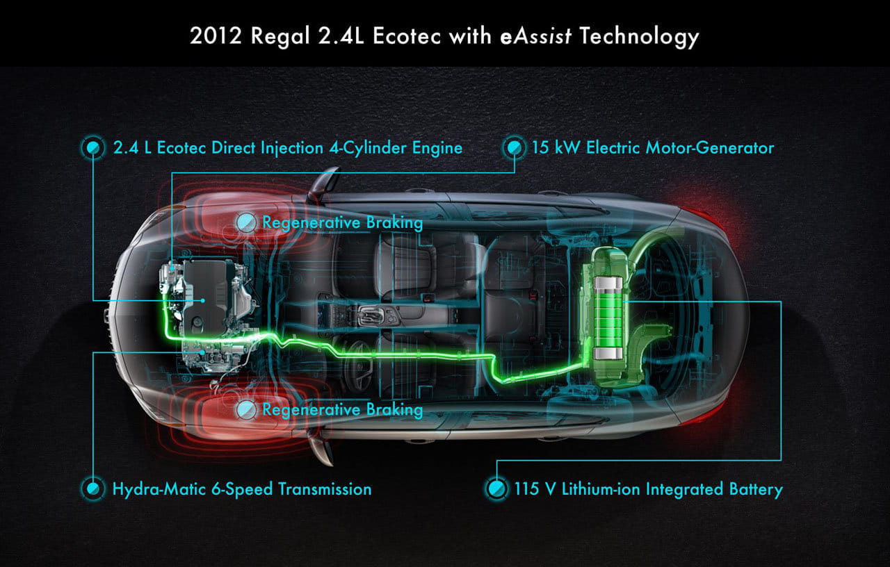 Comparado con la versión 2.4 de 182 CV, el consumo se ve reducido un 25%. Se trata del tercer integrante de la familia Regal en EEUU, después de esta misma versión atmosférica y la variante 2.0 Turbo de 220 CV, que sí es compartido con el Insignia europeo. El Buick Regal eAssist contará con elementos específicos como las llantas de 17 pulgadas con neumáticos de baja resistencia a la rodadura o un ordenador de viajeespecialmente adaptado para favorecer la conducción eficiente.