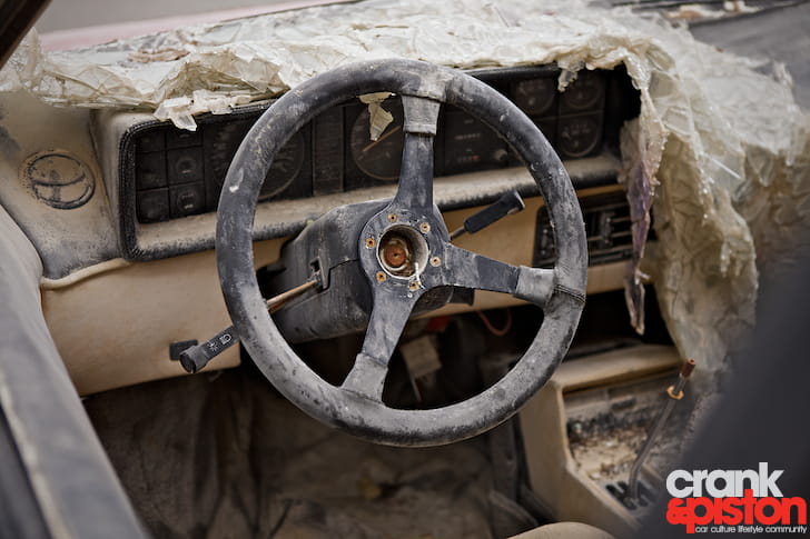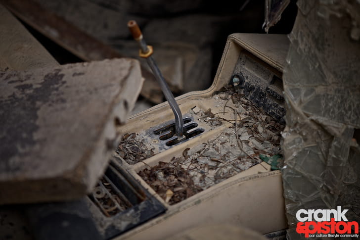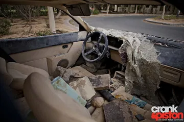 El interior presenta un aspecto lamentable, cubierto de arena y con el cuero muy deteriorado. Al menos sirve de refugio a gatos callejeros. La pintura es ya mate y el óxido ataca bastantes partes del coche. Recuperar esta unidad es posible, pero el coste y esfuerzo de recuperar los papeles y la propia restauración condenan a este Ferrari a pudrirse para siempre en el desierto, hasta que quizá el ayuntamiento lo lleve a un depósito junto a otras joyas olvidadas.