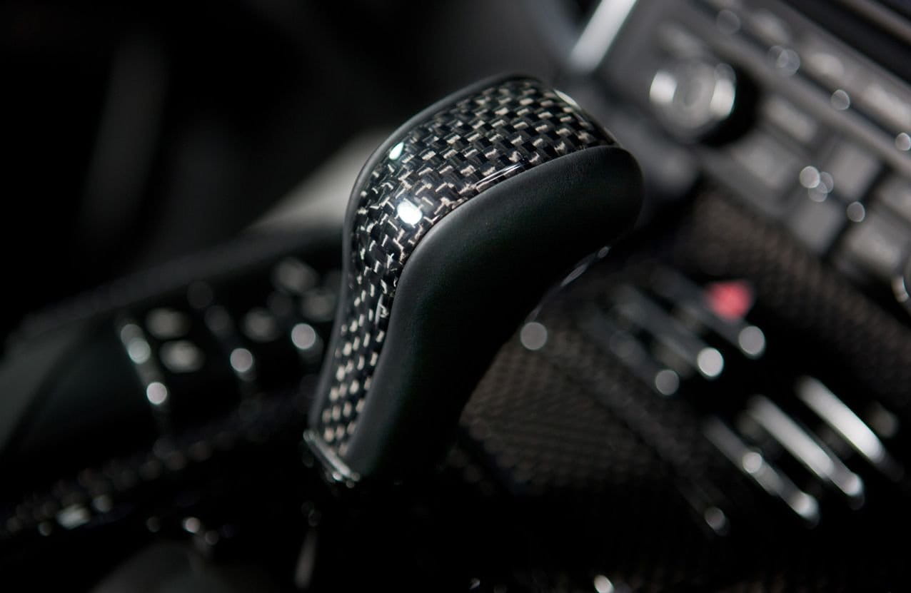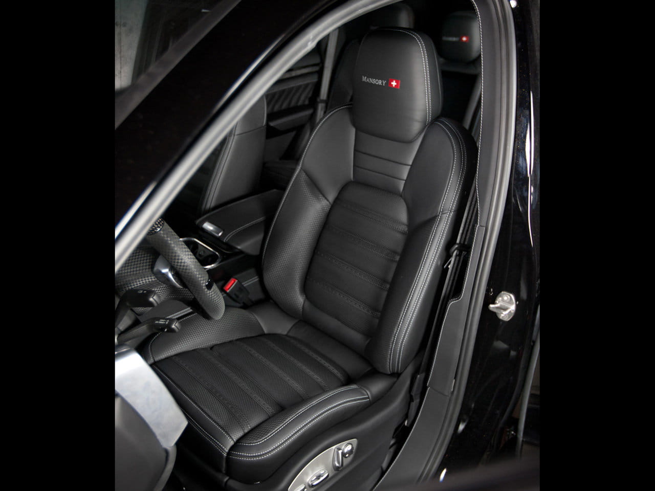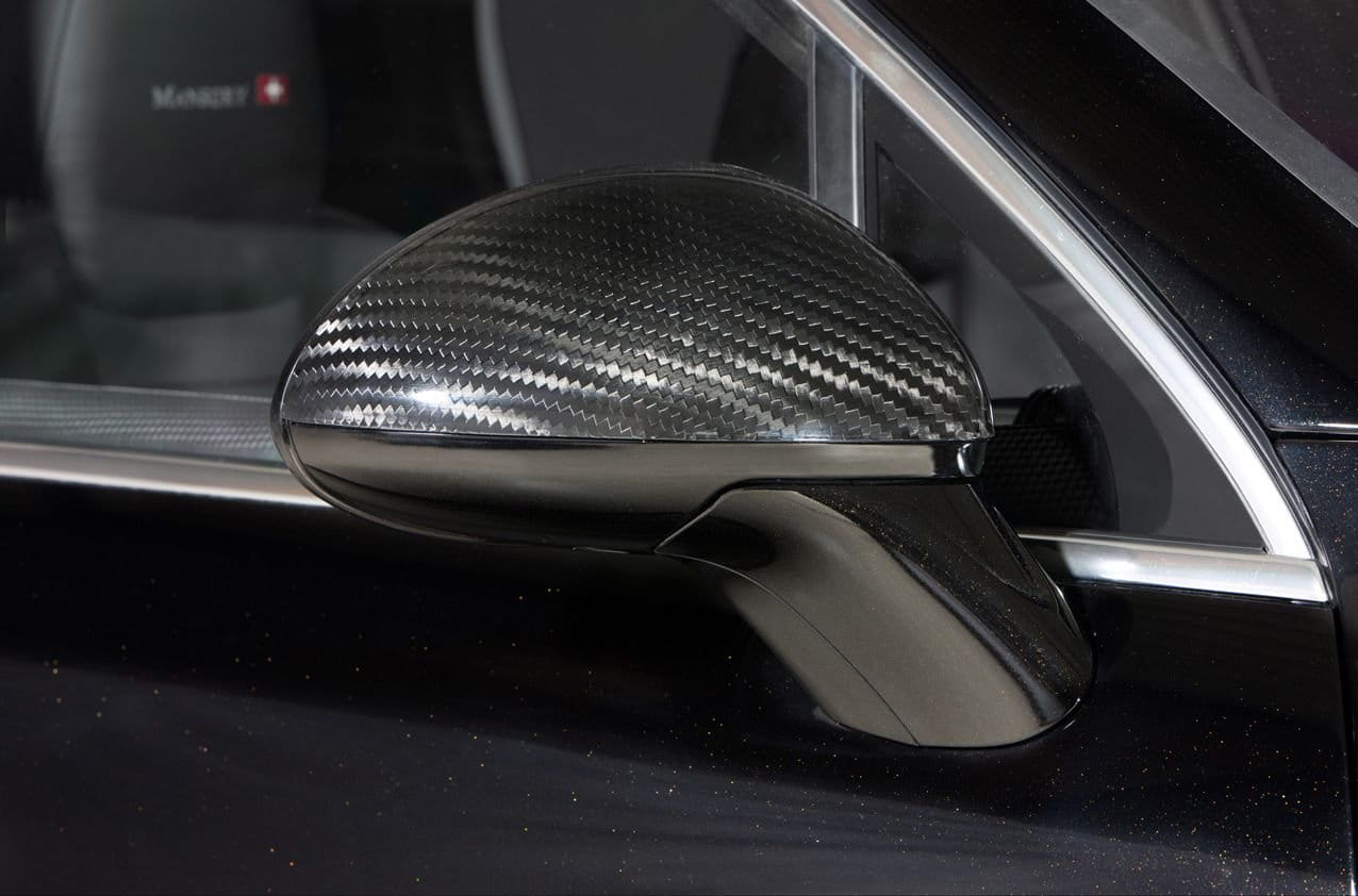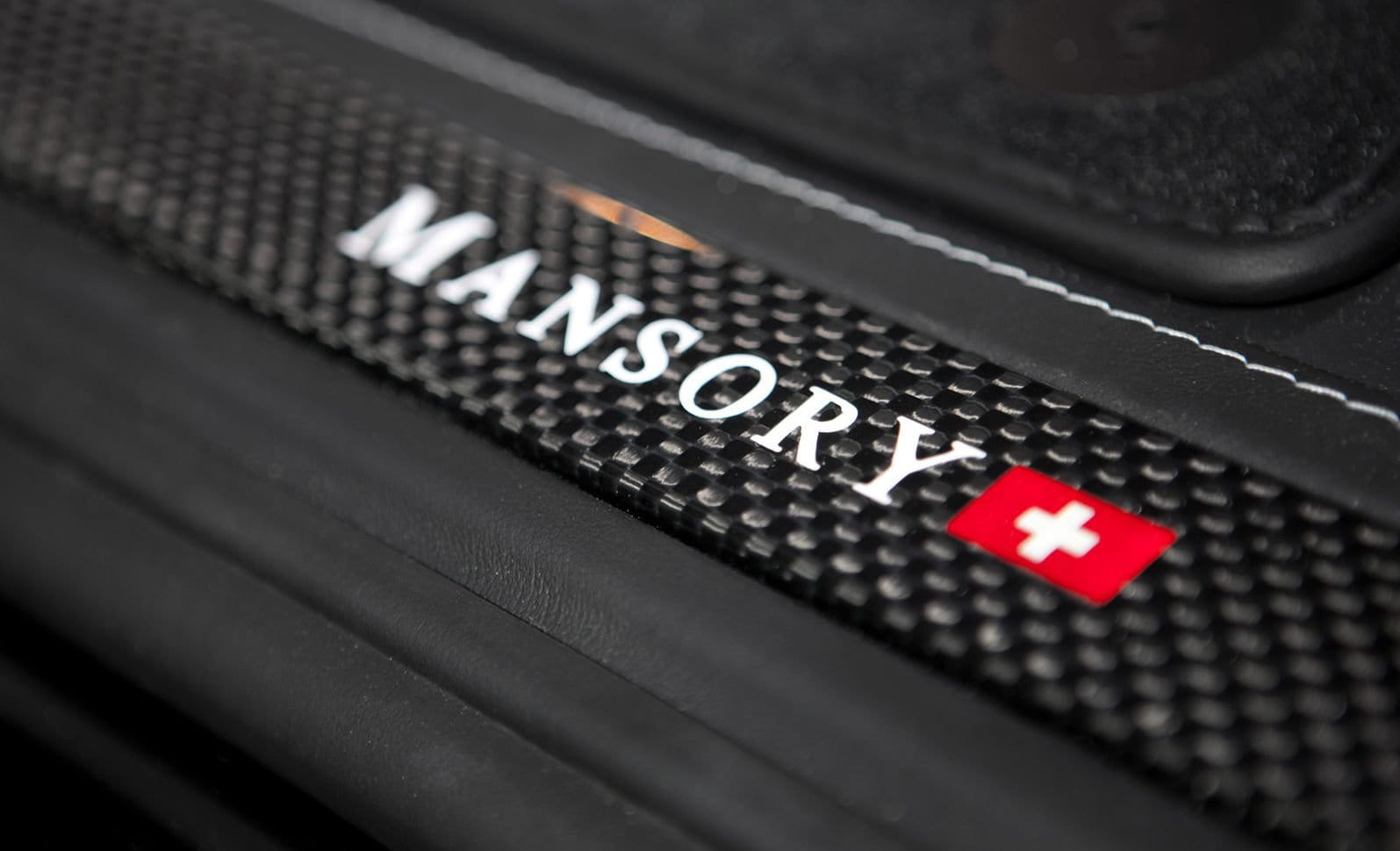 En cuanto a habitáculo, de nuevo Mansory está comedida, muy posiblemente por haberse ceñido exclusivamente a los tonos de color oscuro. El tapizado de cuero para asientos y puertas me parece un auténtico capricho, y las inserciones de fibra de carbono en volante, salpicadero y consola central no quedan nada mal. Por supuesto, es un programa de personalización total, que alcanza incluso a las alfombrillas, que imitando al volante, adoptan los logotipos de Mansory, con su heráldica helvética.