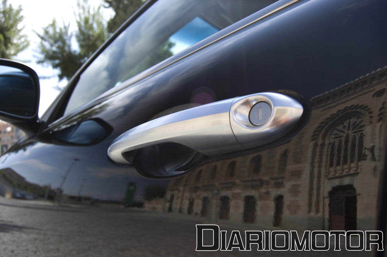 Por fuera goza de muchos detalles que revelan su calidad, véanse los tiradores de las puertas delanteras metálicos y cromados. Pero también de otros detalles que desentonan con el resto, por ejemplo los tiradores de las puertas traseras, que si bien se han situado en el vértice de la ventanilla para no romper la línea lateral de este cinco puertas que aspira a “coupé-compacto”, penaliza demasiado su calidad el hecho de que éstos sean de plástico negro y nos transmitan cierta sensación de fragilidad.
