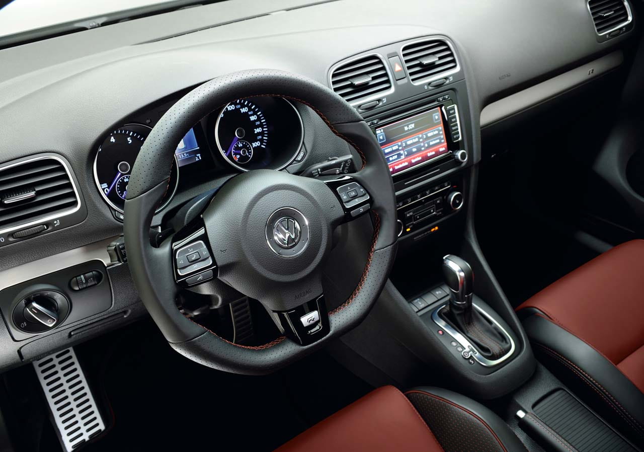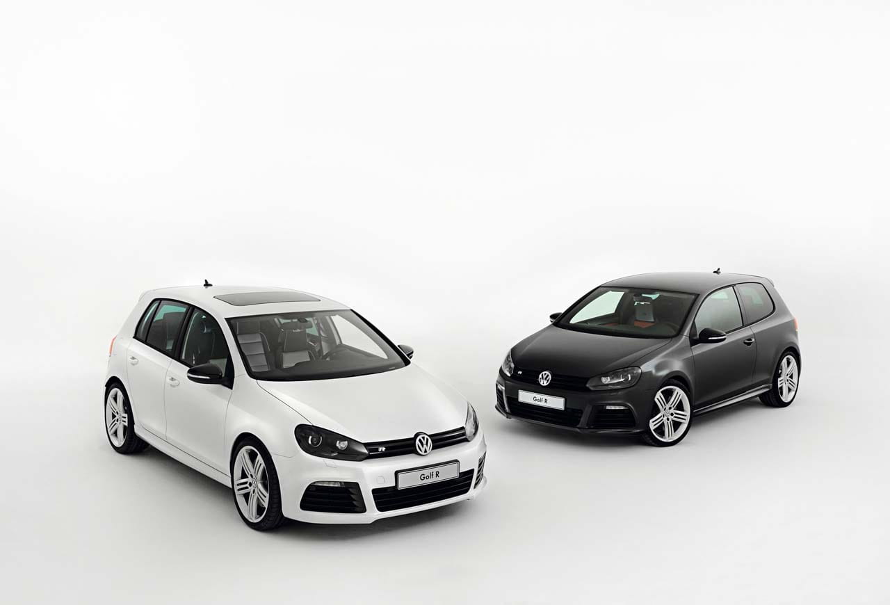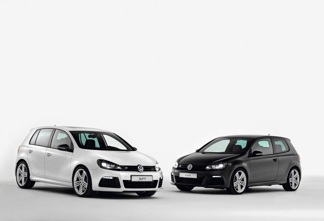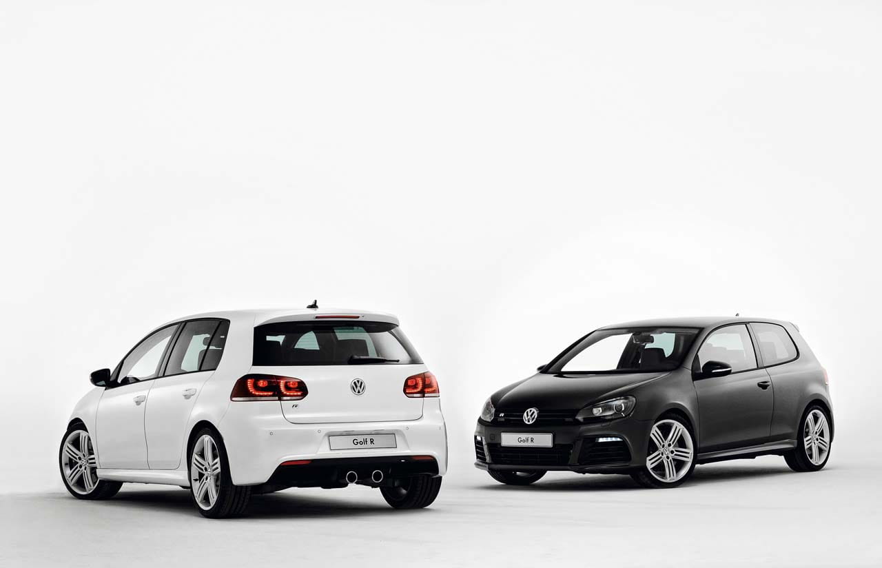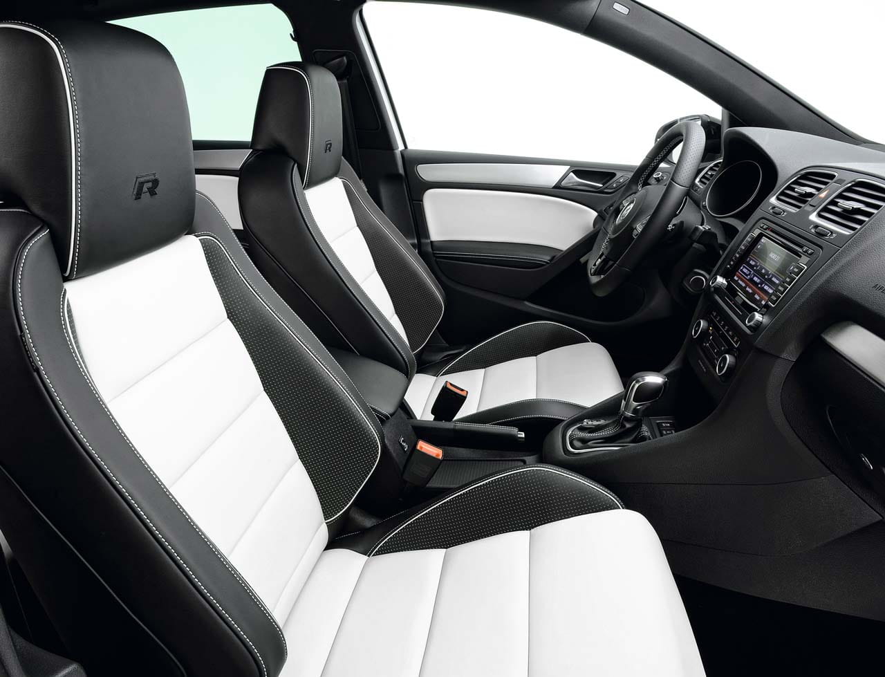 Volkswagen R GmbH ha creado para nosotros cuatro versiones diferentes del Golf R, dos de ella referencia para sus creadores. La primera de ellas es la del Golf R blanco perlado “Oryx White” que monta unas grandes llantas Talladega y su interior está decorado en combinaciones de blanco y negro, con especial hincapié en los asientos de piel Nappa St. Tropez. El segundo es de color negro mate (o “Carbon Steel Grey”) y su interior va completamente a juego.