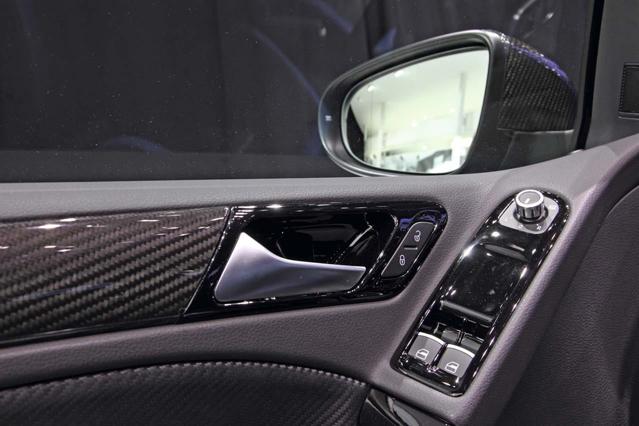 Volkswagen R GmbH ha creado para nosotros cuatro versiones diferentes del Golf R, dos de ella referencia para sus creadores. La primera de ellas es la del Golf R blanco perlado “Oryx White” que monta unas grandes llantas Talladega y su interior está decorado en combinaciones de blanco y negro, con especial hincapié en los asientos de piel Nappa St. Tropez. El segundo es de color negro mate (o “Carbon Steel Grey”) y su interior va completamente a juego.