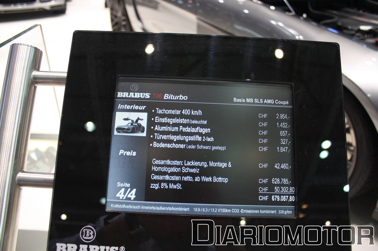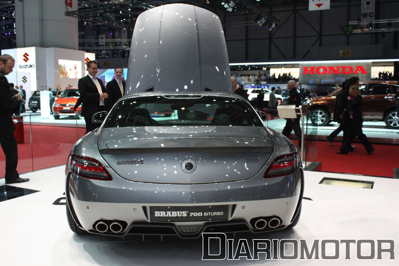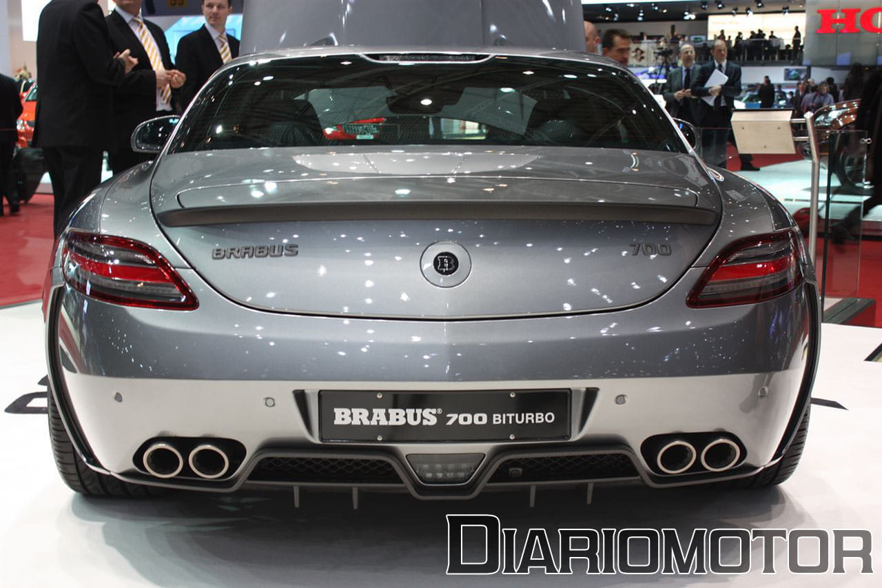 El coche que ha captado toda la atención en el stand de Brabus en Ginebra ha sido el espectacular 700 Biturbo. Tiene un nombre un tanto enigmático, pero en el fondo sólo es una preparación para el Mercedes SLS AMG. Hasta la fecha, creo que es la más potente del panorama tuning y evita caer en los excesos de otros preparadores, como es el caso de Hamann o FAB Design. Su nombre no le hace justicia, pues en realidad monta un kit de doble turboalimentación en serie, denominado twin-turbo.