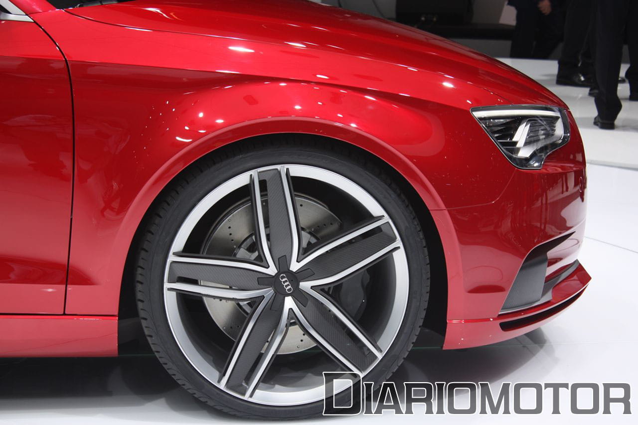 Visualmente se presenta como una berlina atractiva y deportiva gracias a las defensas afiladas, el difusor trasero con sendas salidas de escape en los flancos, unas descomunales llantas con neumáticos de perfil corto y los faros y grupos ópticos puntiagudos con tecnología LED. Es probable que la mayoría de estos detalles desaparezcan cuando el Audi A3, y en concreto su variante sedán, llegue a los concesionarios.