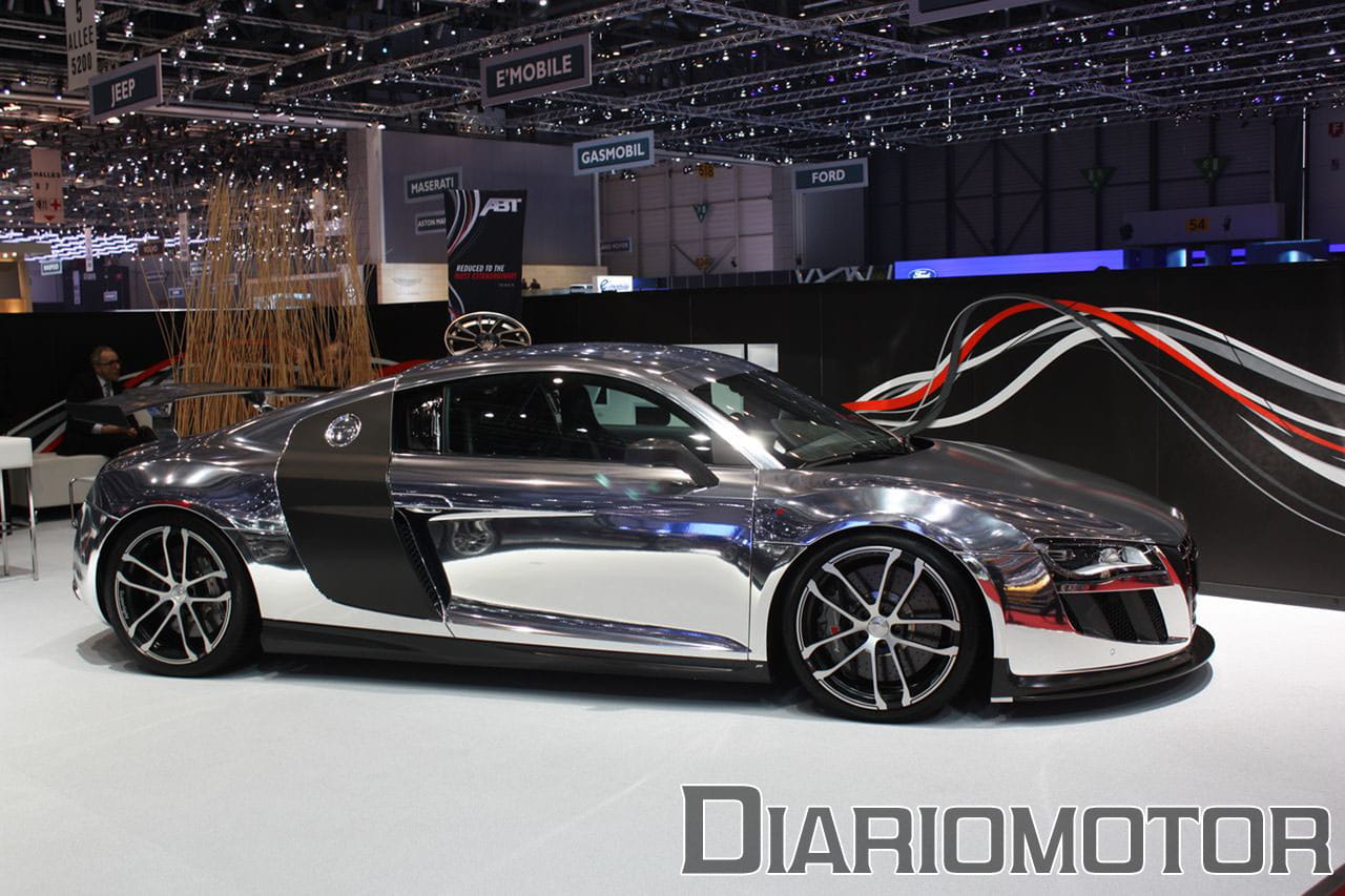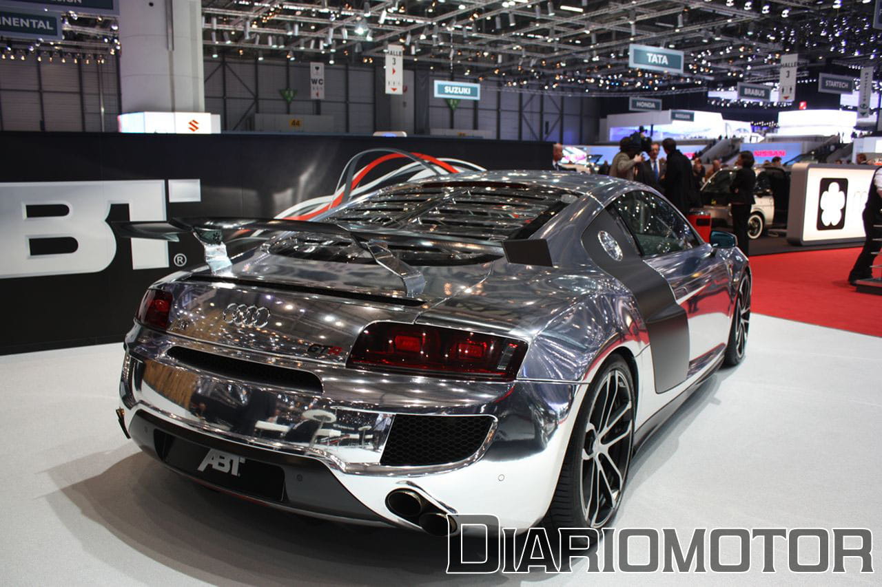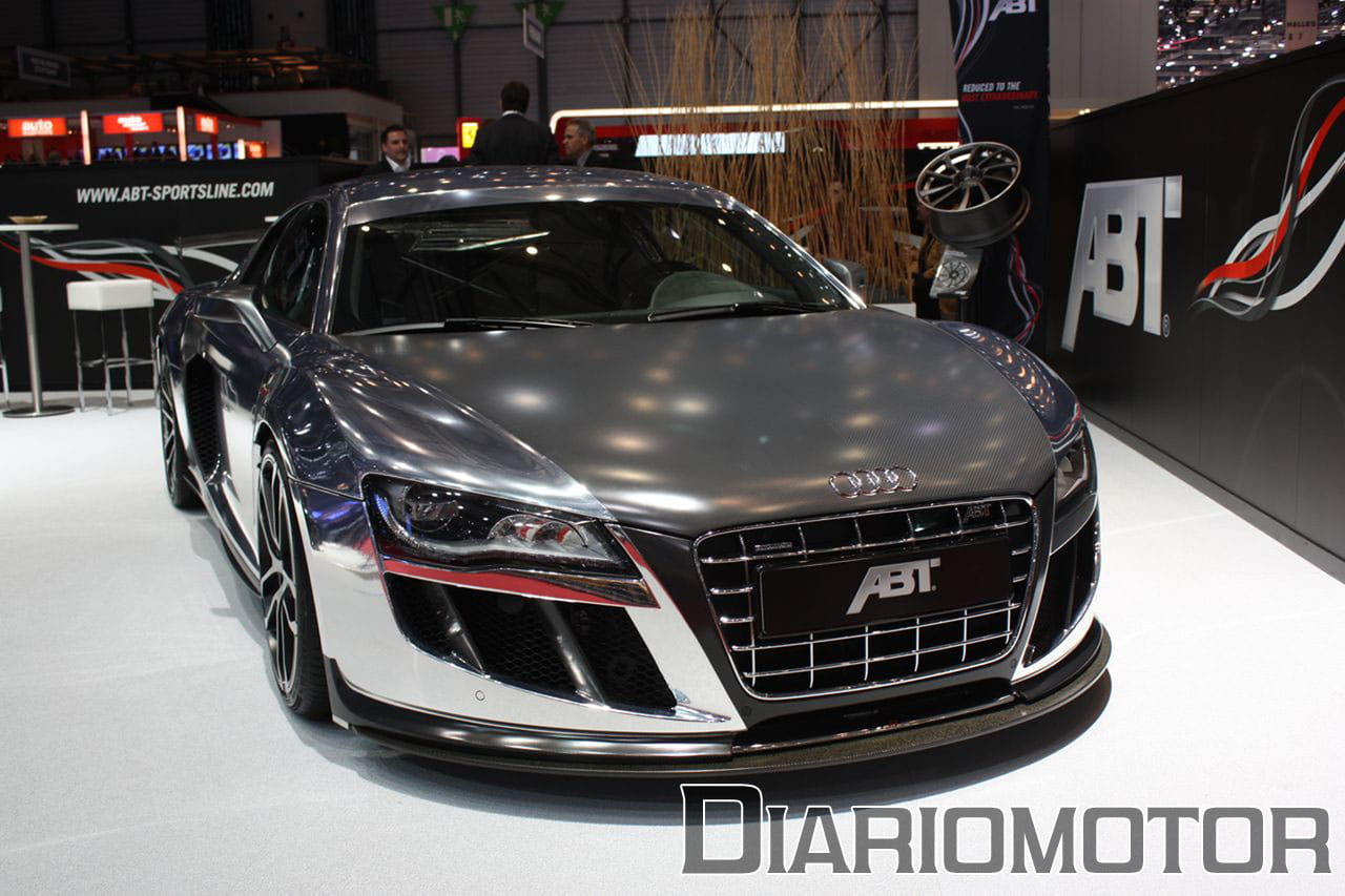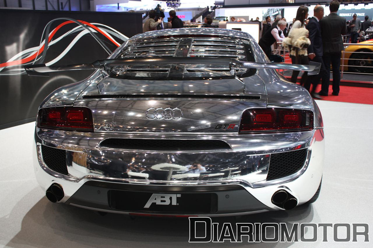 La otra estrella de ABT en Ginebra fue el Audi R8 GTR, aunque en esta ocasión con una pintura totalmente cromada que lo convierte casi literalmente en una brillante estrella. Por lo demás, no se diferencia en nada de los demás R8 GTR, que de por sí emplean la fibra de carbono de manera extensiva y su construcción, además de ser suficientemente especiales gracias a su potenciación a los 620 CV, permitiendo un 0 a 100 km/h en 3.2 segundos y una velocidad punta desarrollada hasta los 325 km/h.