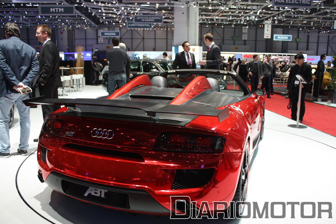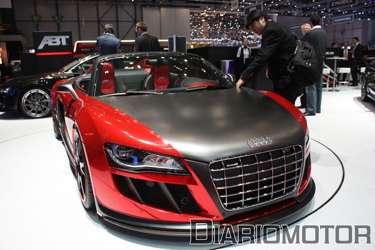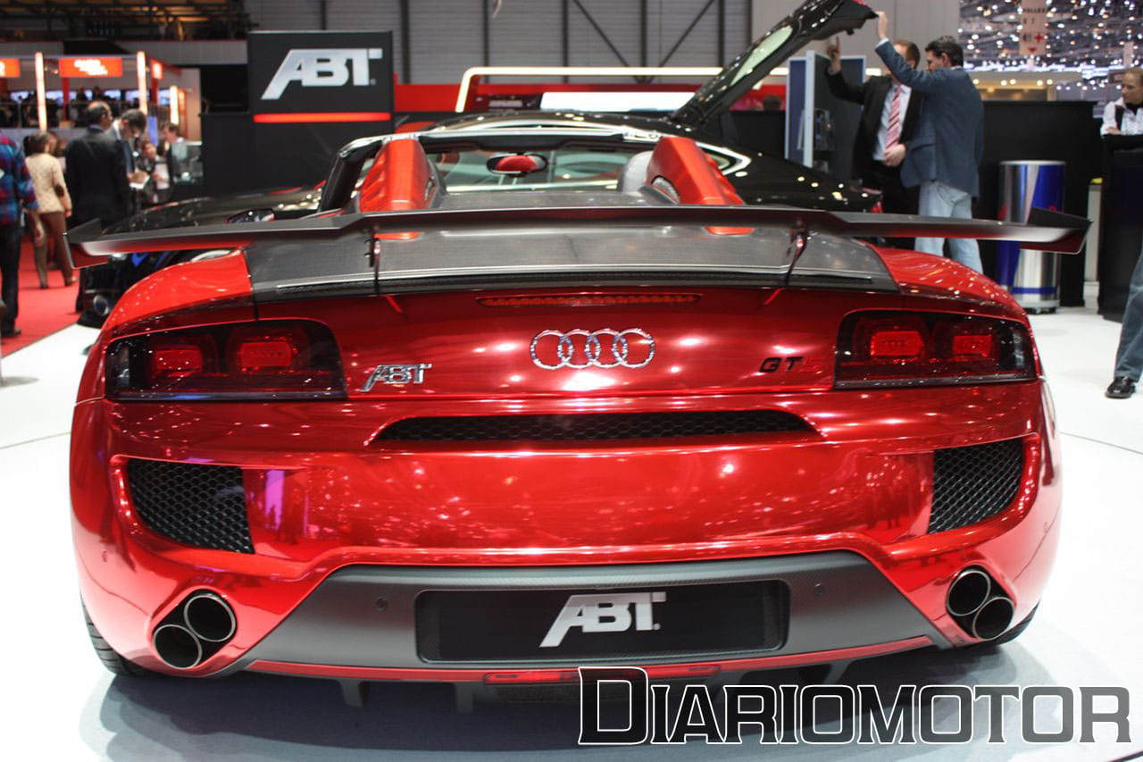 El preparador alemán ABT es uno de los más veteranos y reputados dentro de los especializados en el Grupo Volkswagen. En el Salón de Ginebra, 115 años después de la fundación de ABT, presentan el nuevo ABT R8 Spyder GTS y una versión cromada del R8 GTR que presentaban el pasado año. El centro de las miradas es el descapotable, pintado en color rojo pasión, tiene partes de su carrocería construidas en fibra de carbono, como puede ser el capó delantero lo elementos que protegen al motor de la intemperie.