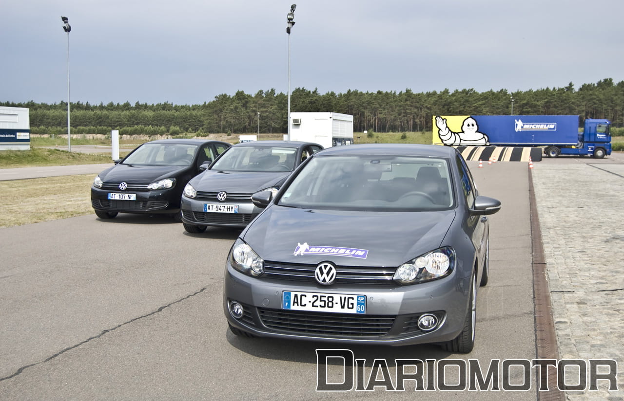 En nuestro caso pudimos realizar un sencillo análisis empírico que consistía en “soltar” el freno de mano en una rampa y sincronizadamente en tres vehículos con tres modelos de neumático de diferentes marcas. Cada uno de ellos eran exactamente el mismo modelo (un Volkswagen Golf) y estaban lastrados con los mismos kilogramos, para que el peso no afectase.